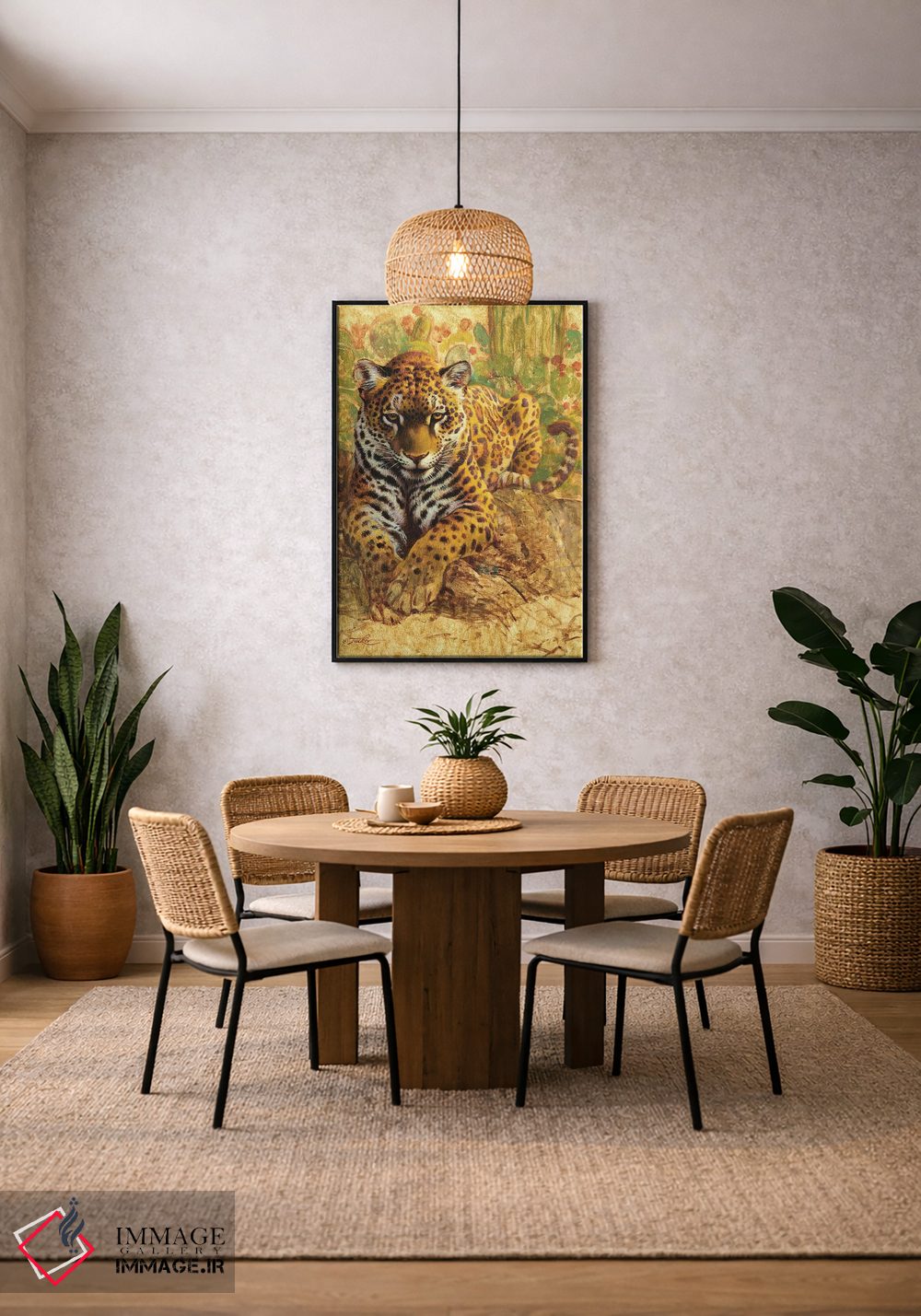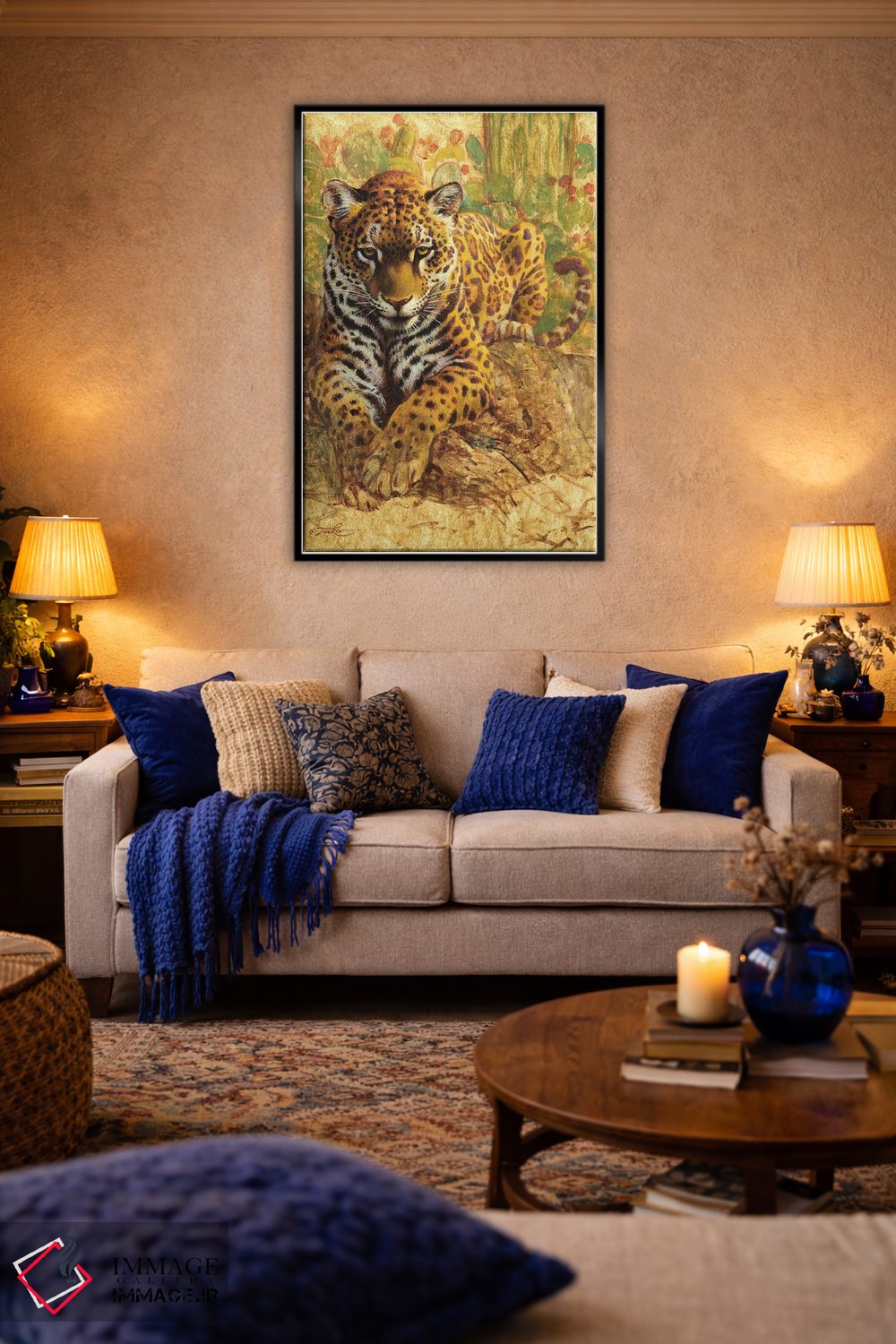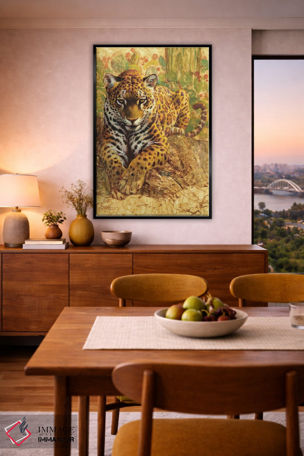 براساس پالت ترکیبی اثر، قاب تیک گرم (چوبی) پیشنهاد اول است و مشکی مات (فریم متوسط) مکمل. برای سفارشهای پروژهای با ابعاد و قابهای اختصاصی با ایماژ در تماس باشید.