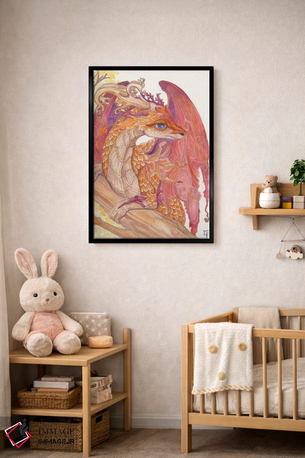 برای سلیقههایی که به جزئیات احترام میگذارند، «اژدهای پاییزی» اثرِ «مایت فلای آرت اند ایلاستریشن (استودیو طراحی و تصویرگری)» چیدمان را از حالت پراکنده خارج میکند؛ برای دکورهای کلاسیک با چوب و پارچه پیشنهاد میشود. در کنار نورپردازی نقطهای، جلوهاش حرفهایتر میشود.