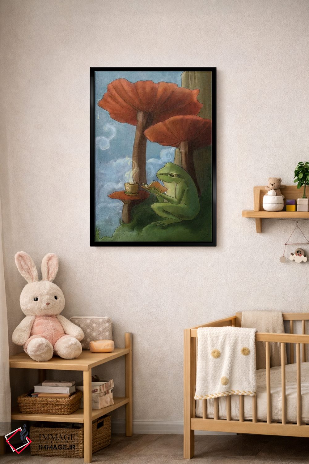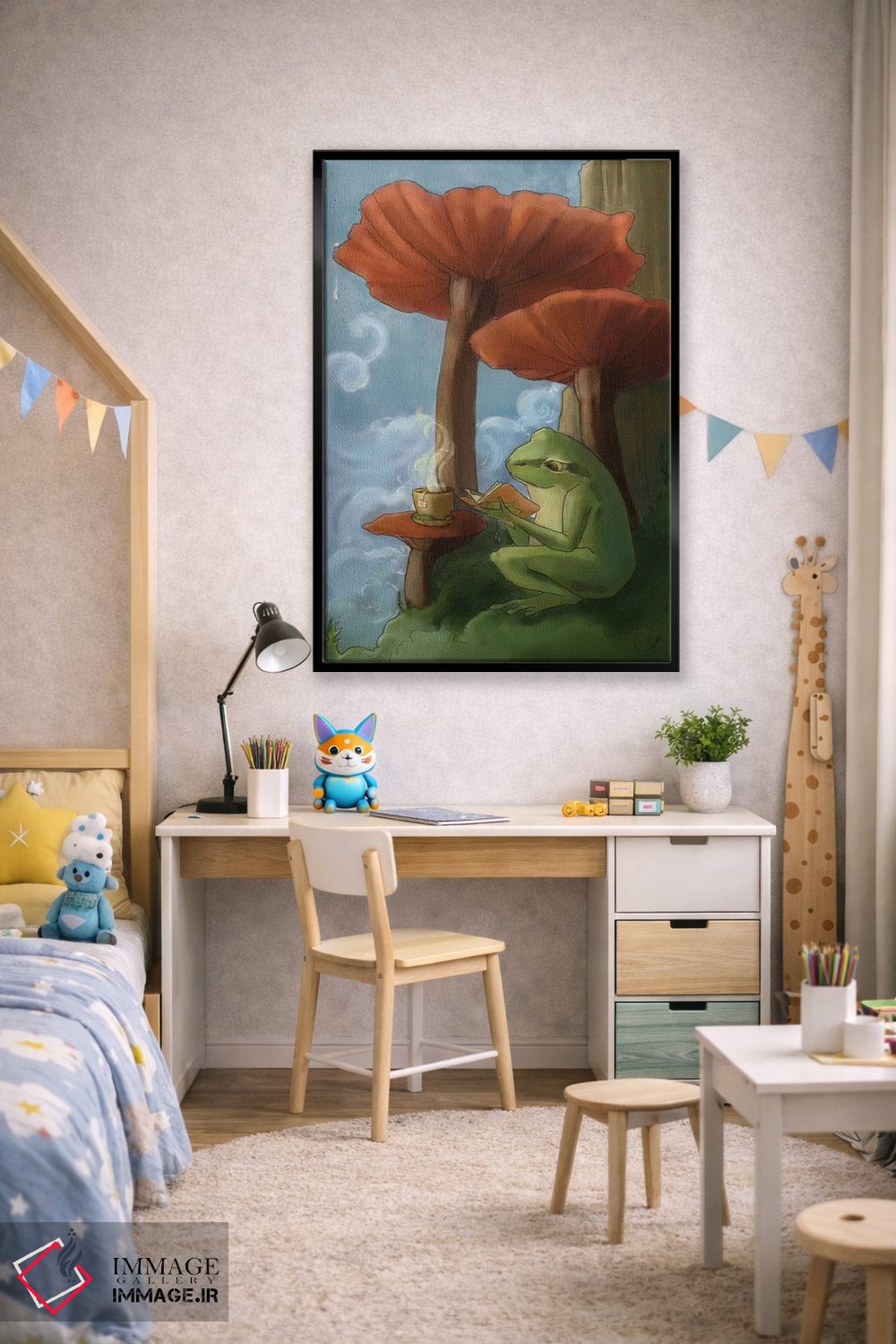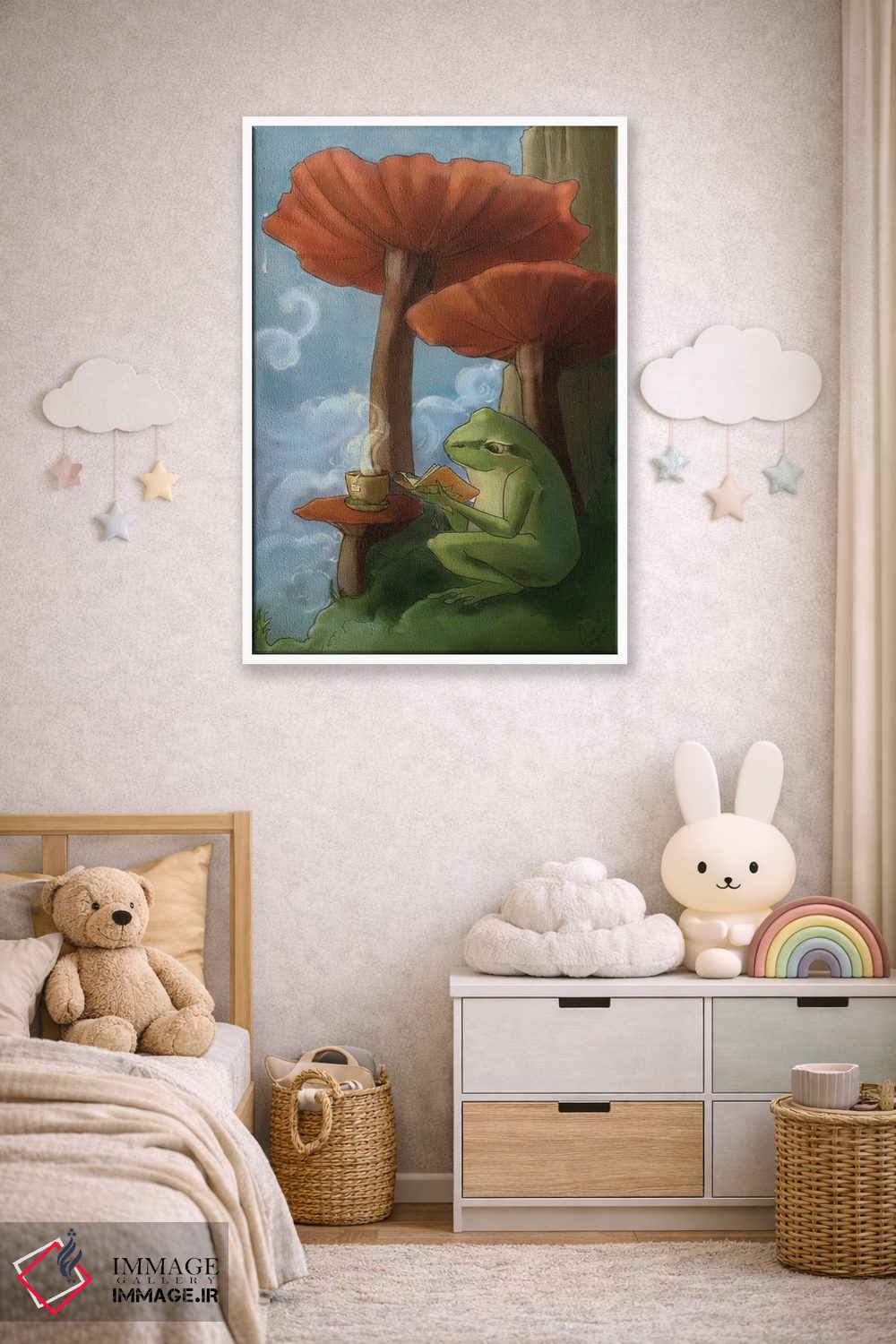در این اثر، «قورباغه درختی اورگن» اثرِ «مایت فلای آرت اند ایلاستریشن (استودیو طراحی و تصویرگری)» چیدمان را از حالت پراکنده خارج میکند؛ برای دیوار بالای کنسول یا شومینه پیشنهاد میشود. به فضا حس «گالری خانگی» میدهد، بدون اینکه اغراق کند.