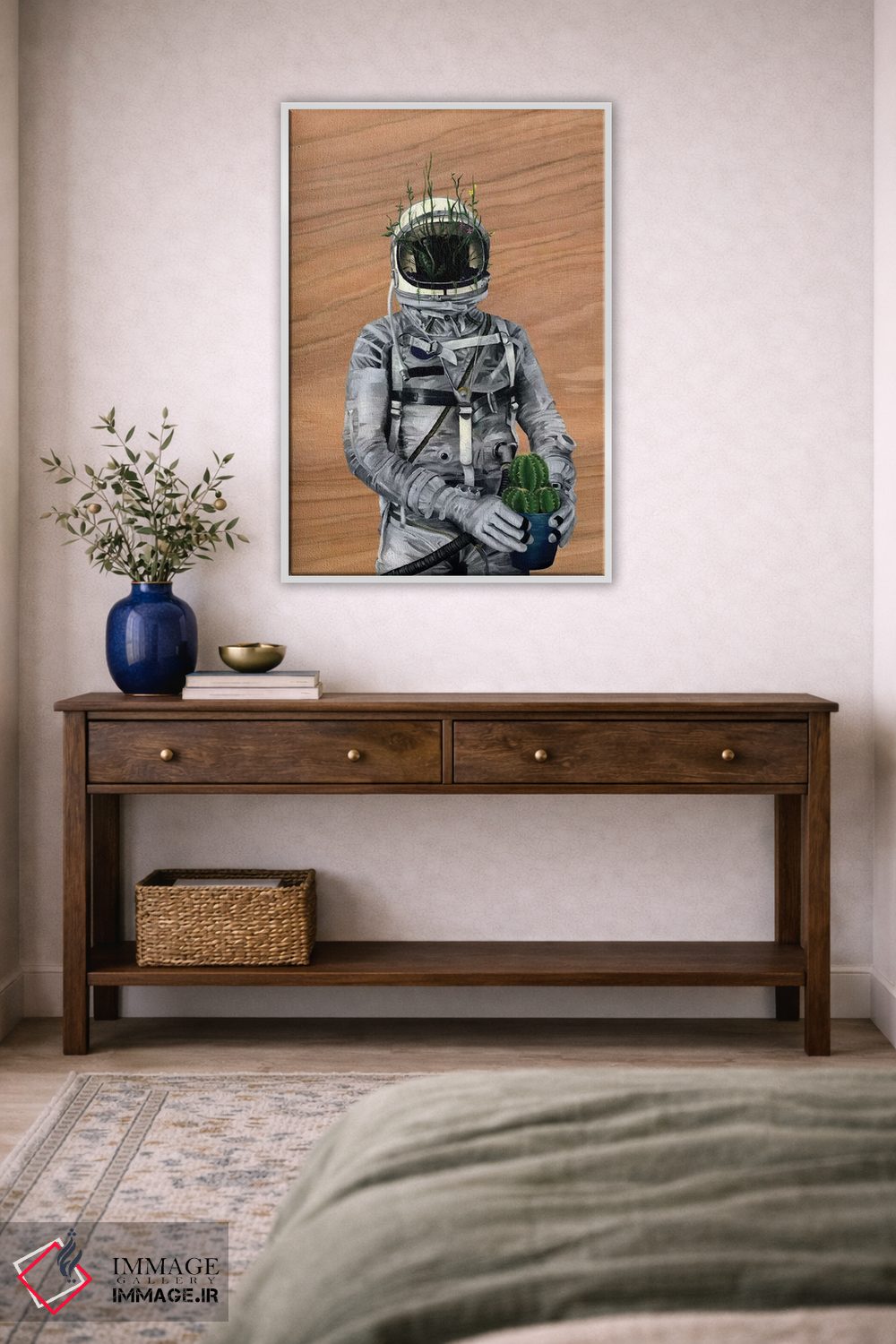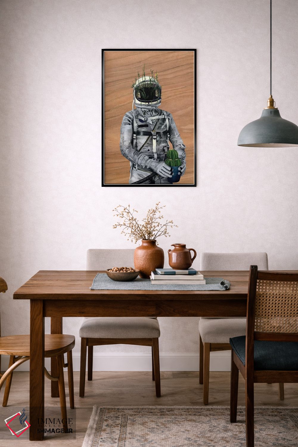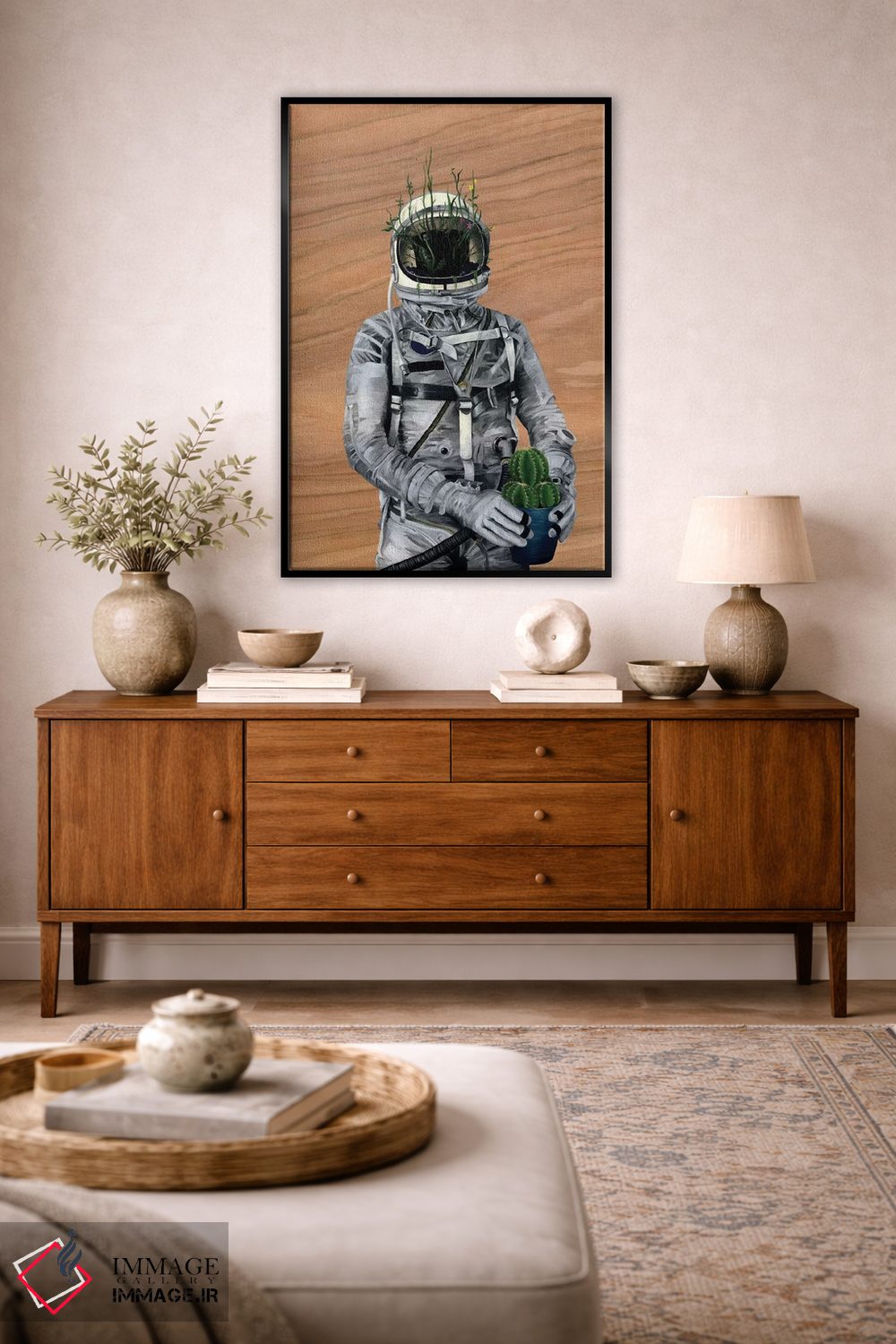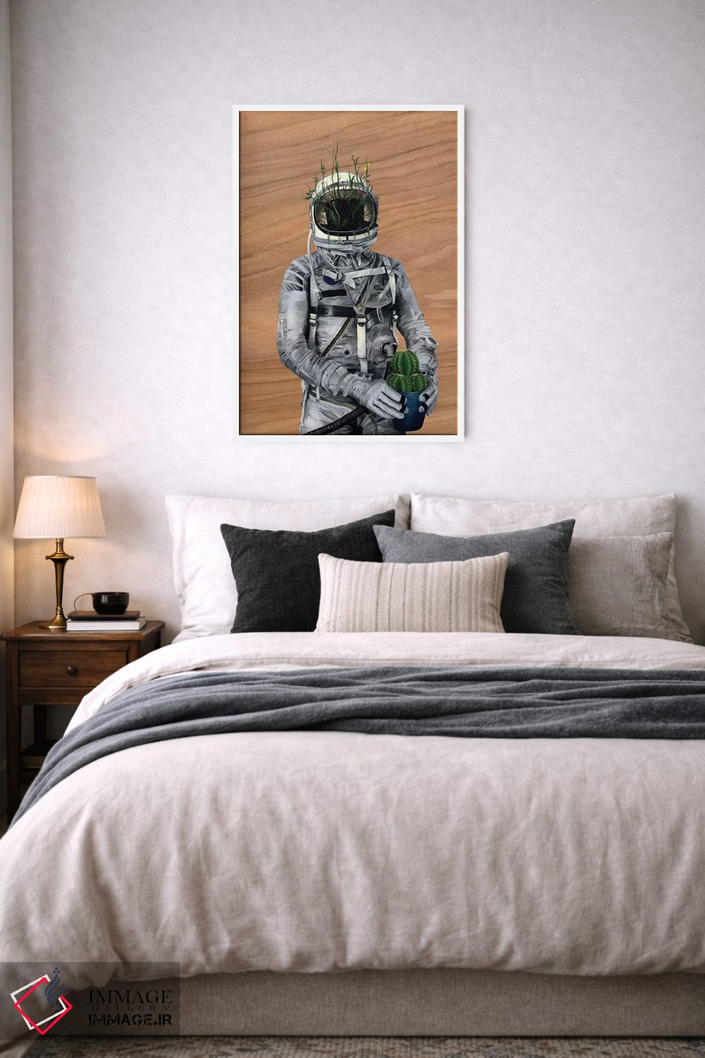 ساختار بوم گالری ایماژ طوری است که اثر روی دیوار «پرداختشده» و حرفهای دیده شود—نه پرزرقوبرقِ بیپایه؛ بلکه دقیق و خوشپرداخت. بافت ظریف کنواس کمک میکند حس اثر هنری را در نگاه نزدیک نگه میدارد و نتیجه را یکدستتر میکند. در بافت ظریف کنواس، به تصویر شخصیت میدهد بدون اینکه شلوغ کند بدون اغراق؛ فقط دقیقتر. حاصل کار، یک تابلو خوشنشین است که هم از دور اثرگذار است و هم از نزدیک خوشخوان.