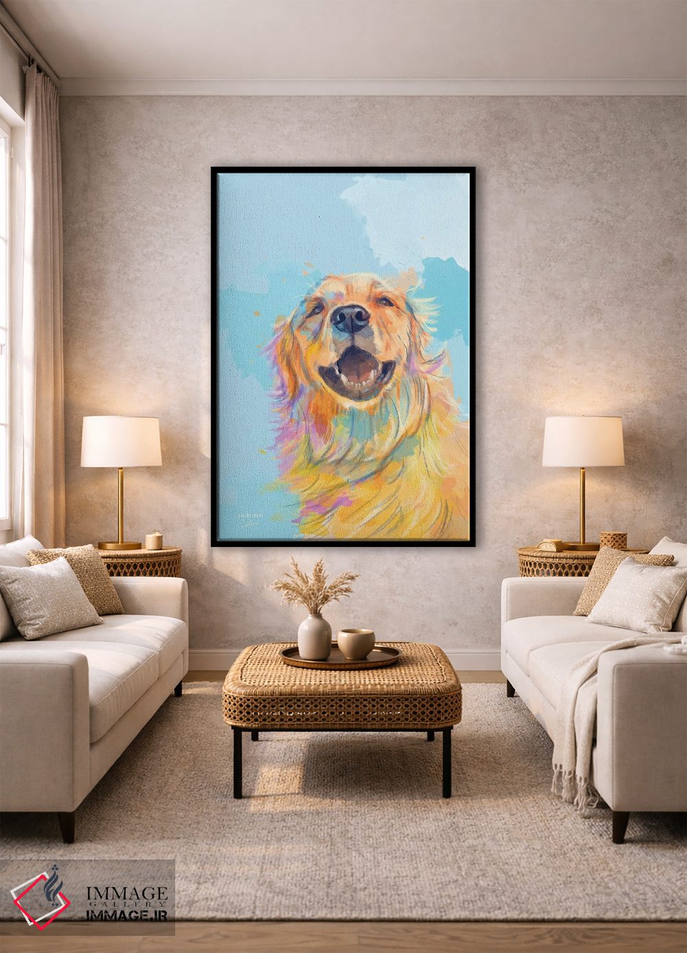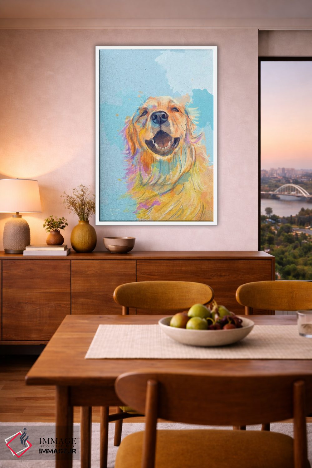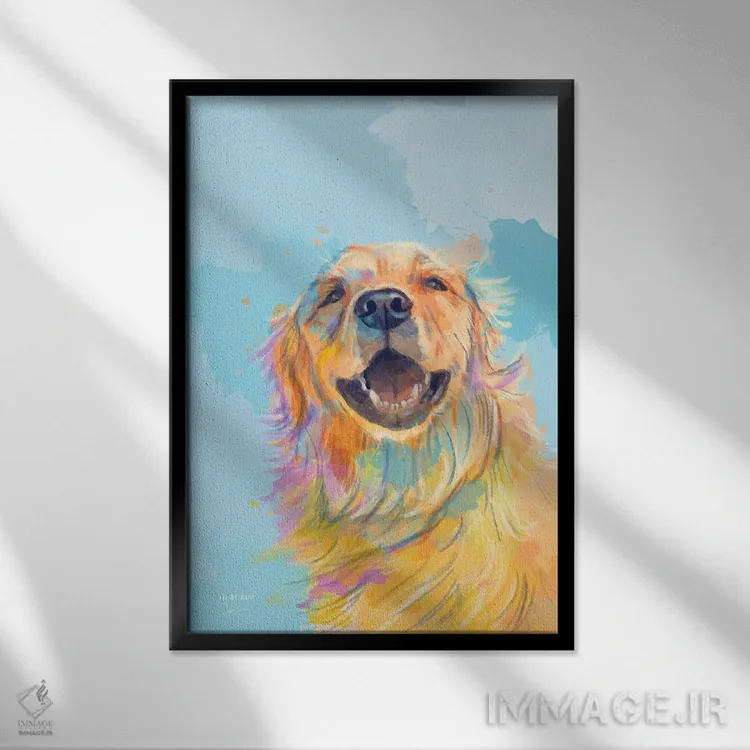 اگر میخواهید دیوار کمی سرزندگیِ محترمانه داشته باشد، «لبخند طلایی—پرترهٔ گلدن رتریور» اثرِ «فلو آرت استودیو (استودیوی هنری)» مثل یک امضای بامزه اما متین عمل میکند، برای راهروها و ورودیهای گرم گزینهٔ مناسبیست. برای دیوار گالریوار هم گزینهٔ خوبیست.
