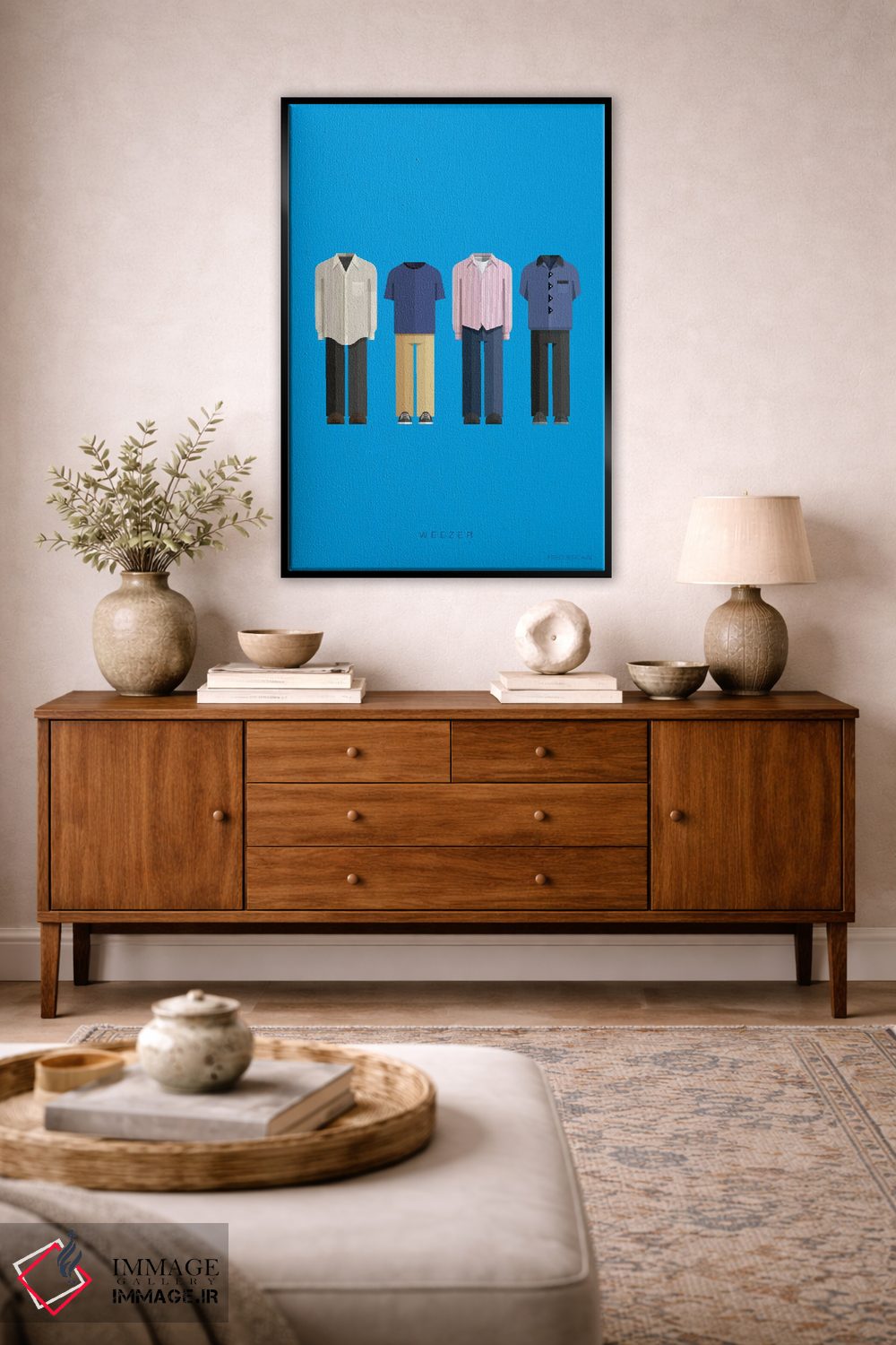 این اثر با عنوان «ویزر (گروه موسیقی)» اثرِ «فرد بیرچال»، تمیز و دقیق است؛ مناسب دیوارهای مینیمال.
