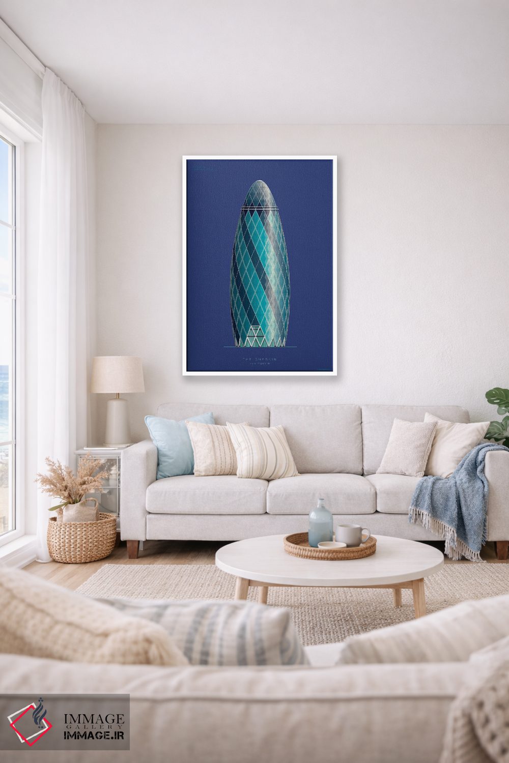 براساس پالت سرد اثر، قاب سفید مات (فریم باریک) پیشنهاد اول است و نقرهای برسخورده (متالیک) مکمل. برای سفارشهای پروژهای با ابعاد و قابهای اختصاصی با ایماژ در تماس باشید.