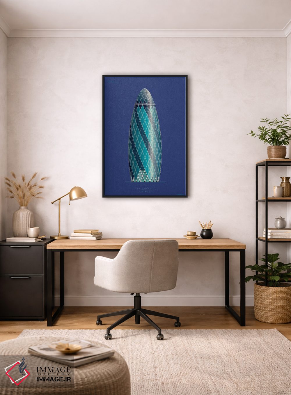 «۳۰ خیابان سنت مری اکس (گرکین)—لندن، انگلستان» اثرِ «فرد بیرچال» با موضوعِ این اثر، برای استودیوها، اتاق کار و چیدمانهای مدرن خیلی خوب جواب میدهد.