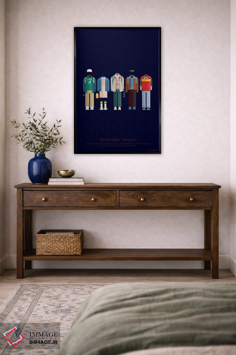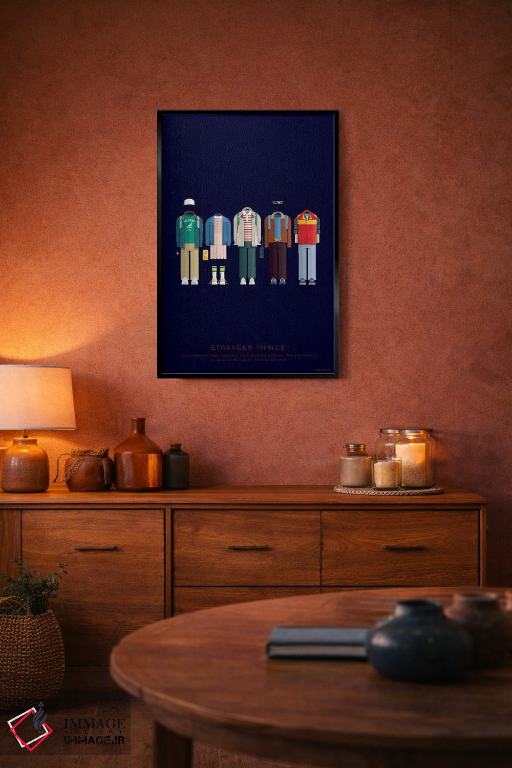 براساس پالت ترکیبی اثر، قاب تیک گرم (چوبی) پیشنهاد اول است و مشکی مات (فریم متوسط) مکمل. برای سفارشهای پروژهای با ابعاد و قابهای اختصاصی با ایماژ در تماس باشید.