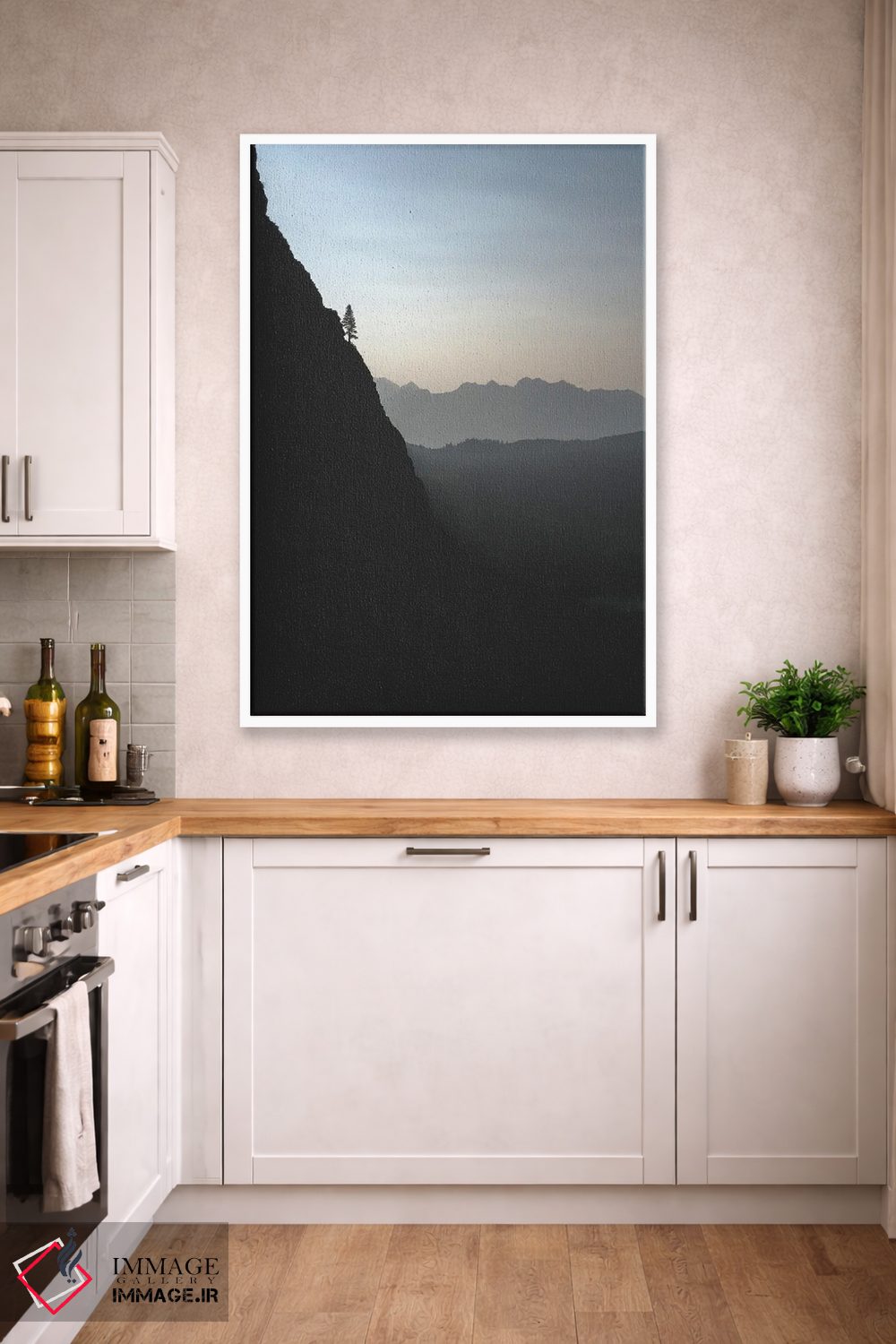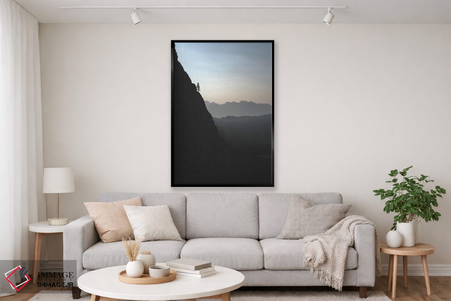 براساس پالت خنثی اثر، قاب مشکی مات (فریم باریک) پیشنهاد اول است و سفید مات (فریم باریک) مکمل. برای سفارشهای پروژهای با ابعاد و قابهای اختصاصی با ایماژ در تماس باشید.