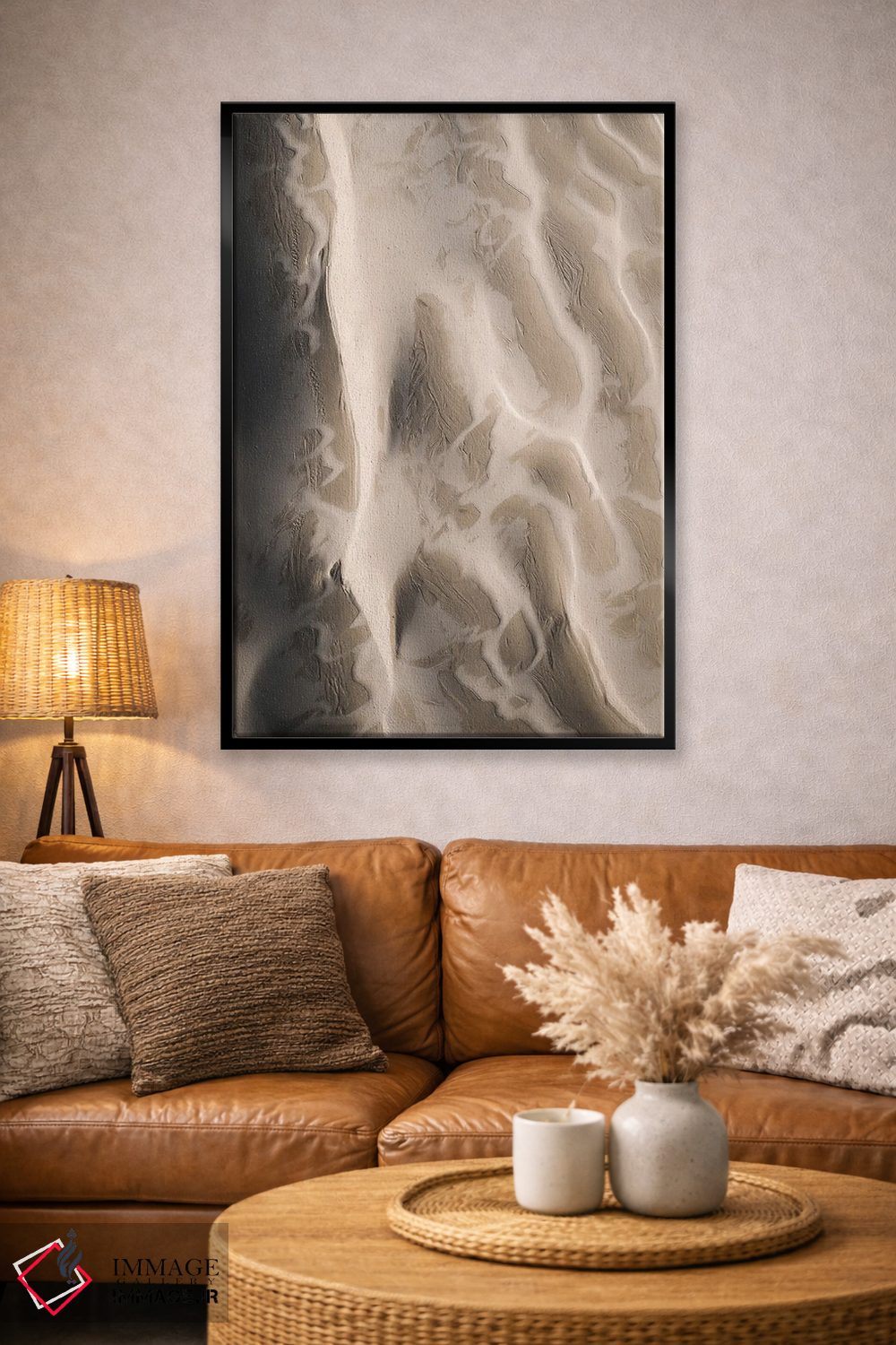 براساس پالت خنثی اثر، قاب بلوط روشن (چوبی) پیشنهاد اول است و استخوانی ملایم مکمل. برای سفارشهای پروژهای با ابعاد و قابهای اختصاصی با ایماژ در تماس باشید.