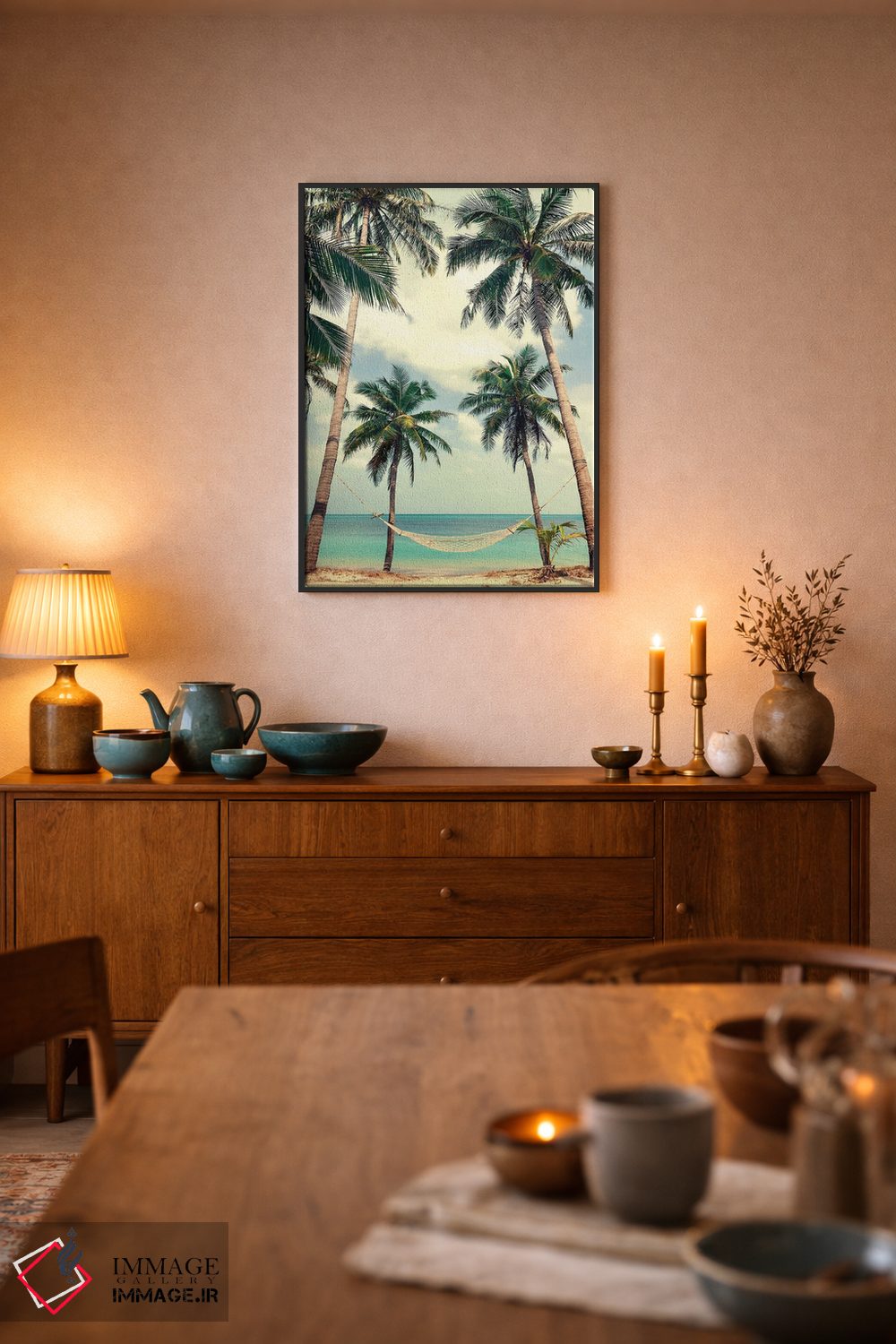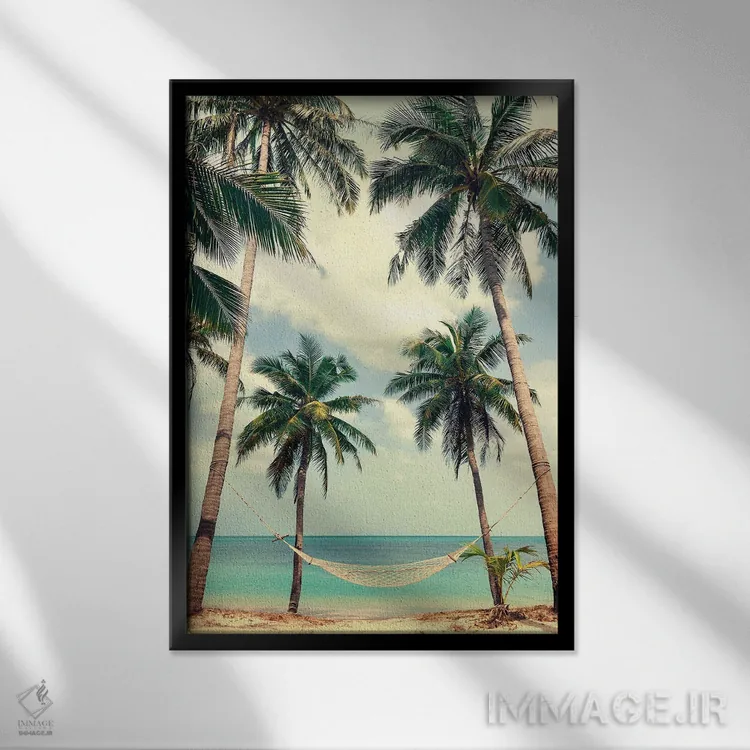 تابلو دکوراتیو آسمان نخل ۳ اثر دیزاین فابریکن - نمای قاب‌دار مشکی