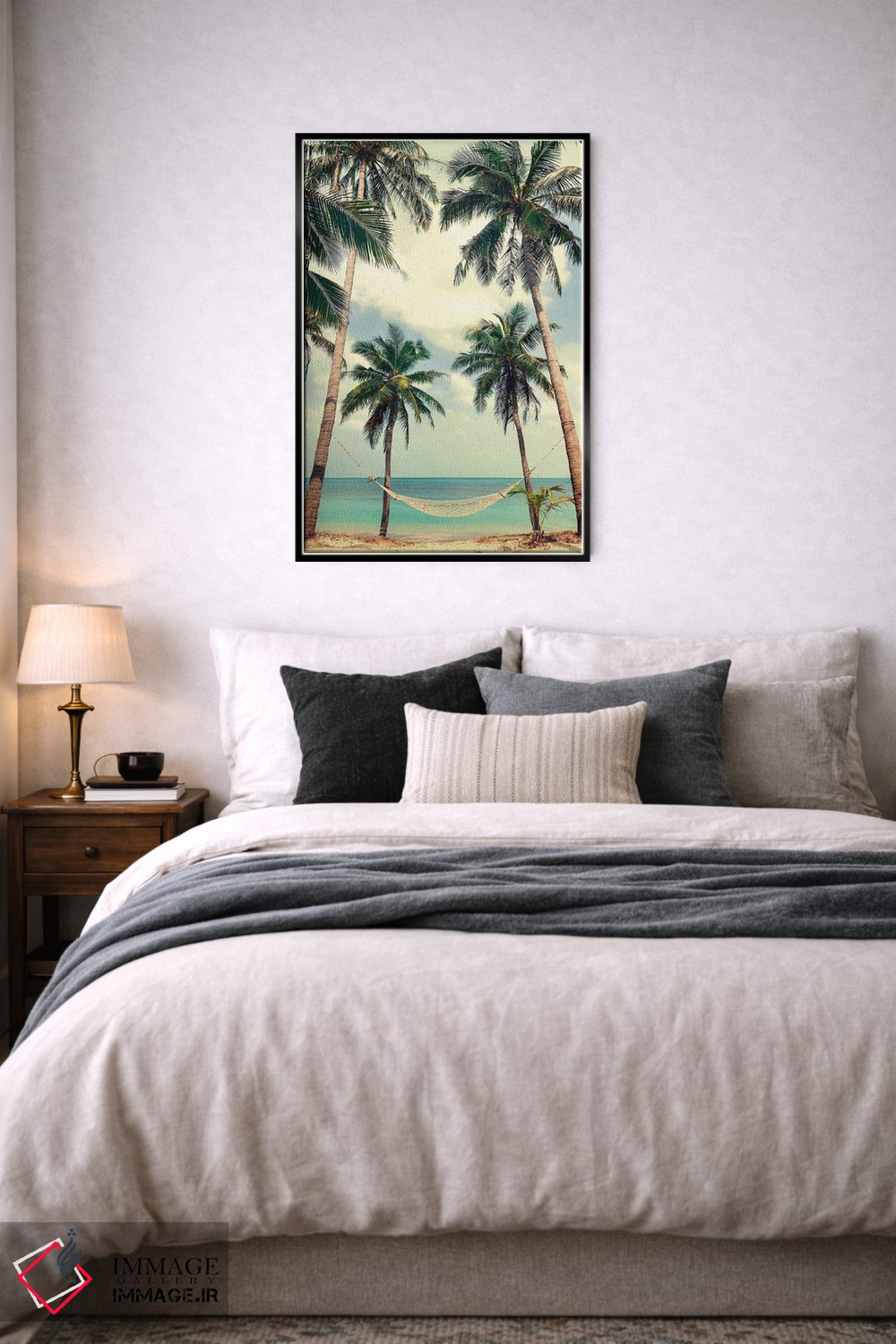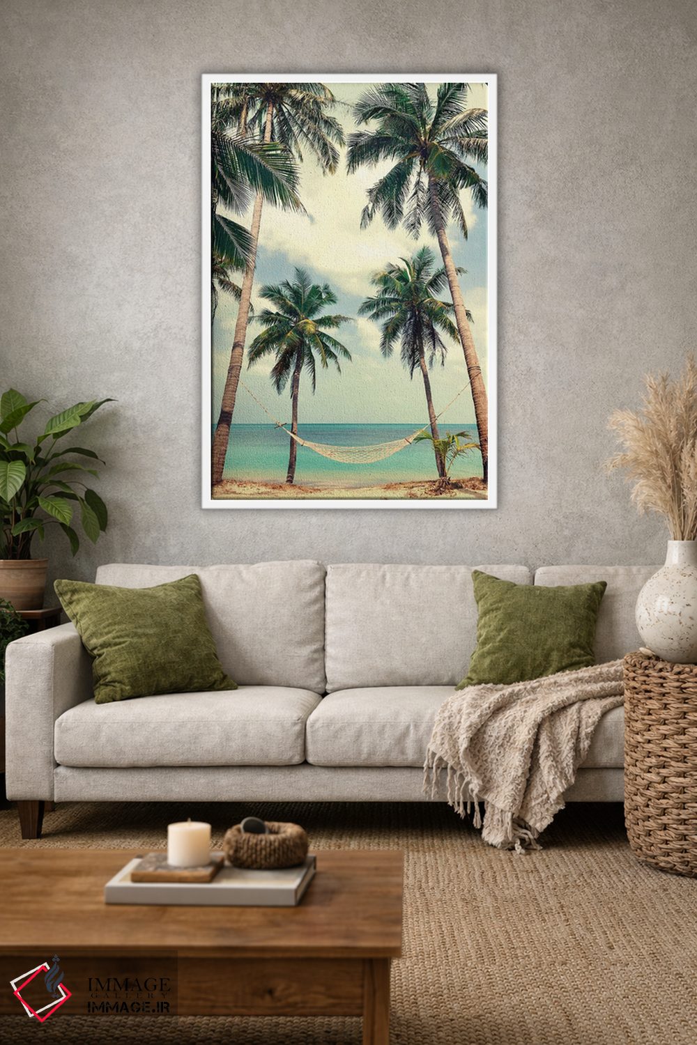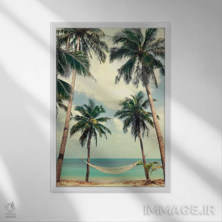 تابلو دکوراتیو آسمان نخل ۳ اثر دیزاین فابریکن - نمای قاب‌دار سفید