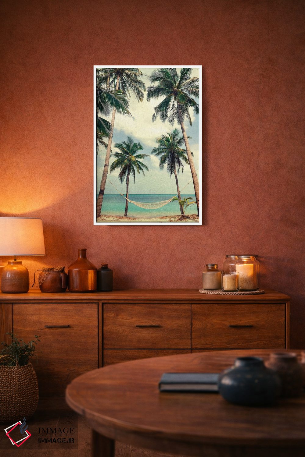 تابلو دکوراتیو آسمان نخل ۳ اثر دیزاین فابریکن - نمای روبه‌رو روی دیوار