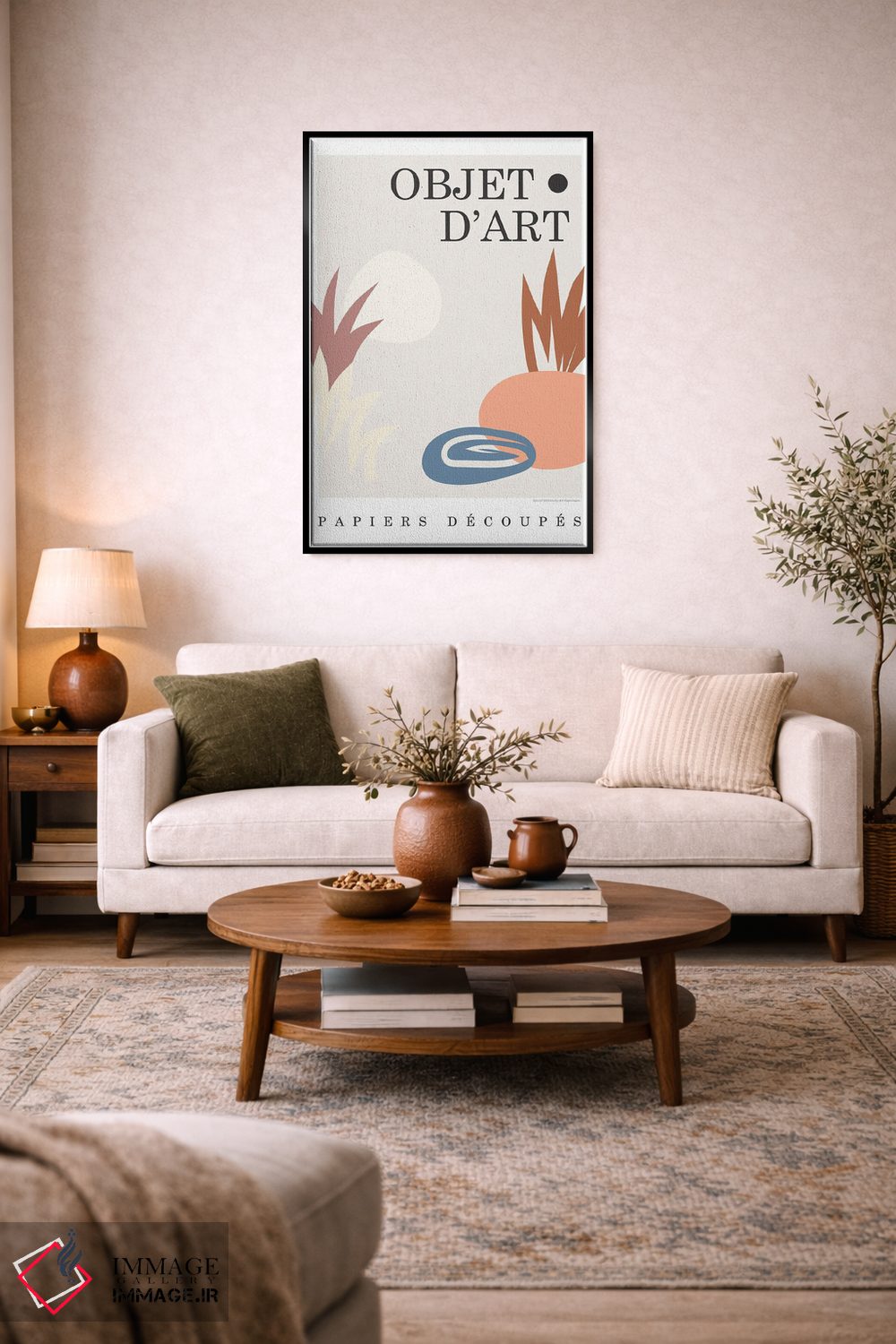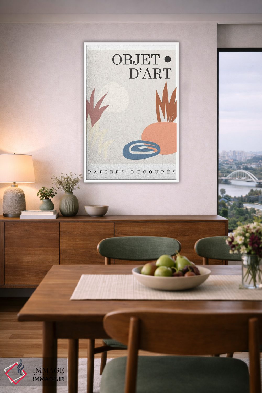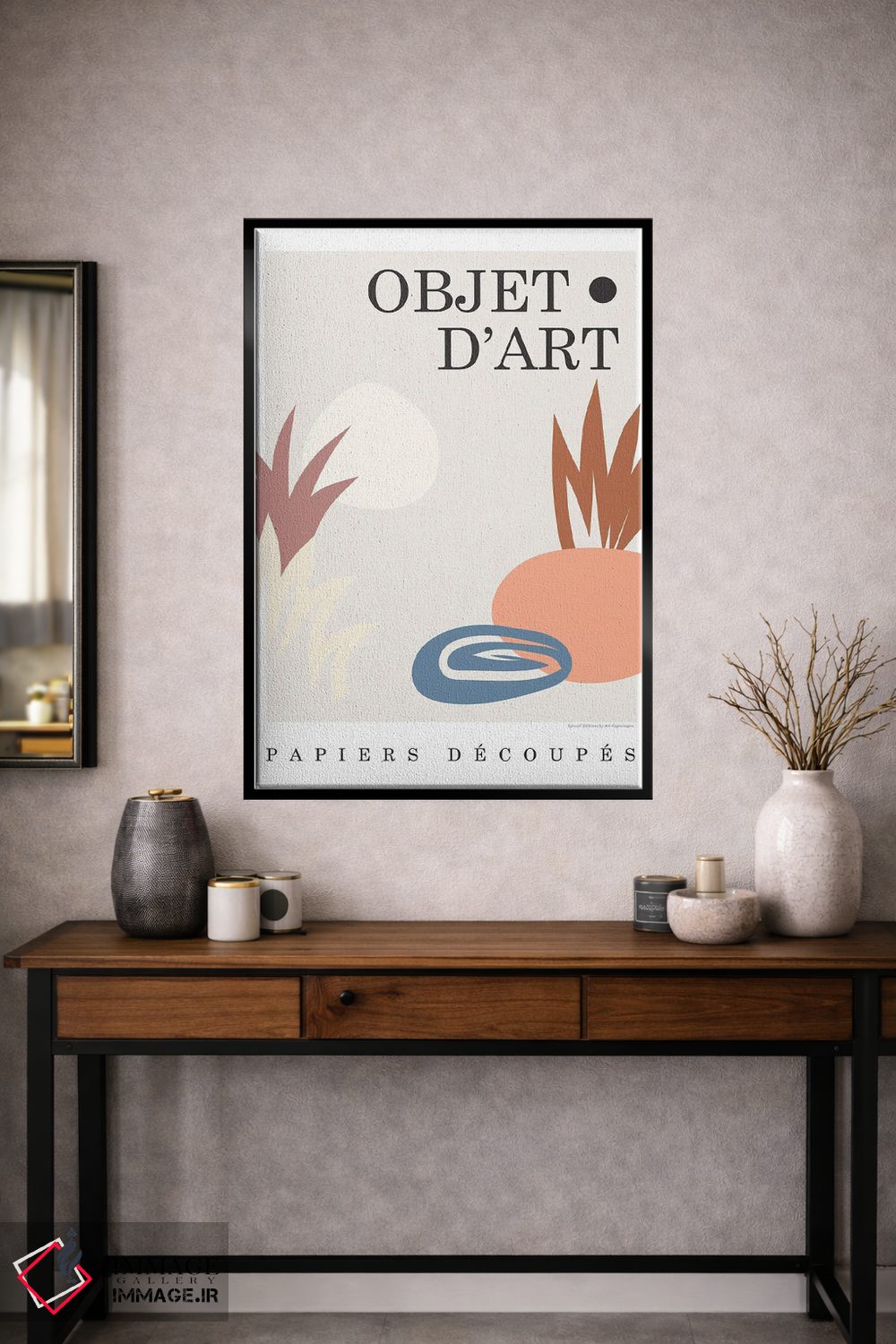 براساس پالت ترکیبی اثر، قاب تیک گرم (چوبی) پیشنهاد اول است و مشکی مات (فریم متوسط) مکمل. برای سفارشهای پروژهای با ابعاد و قابهای اختصاصی با ایماژ در تماس باشید.