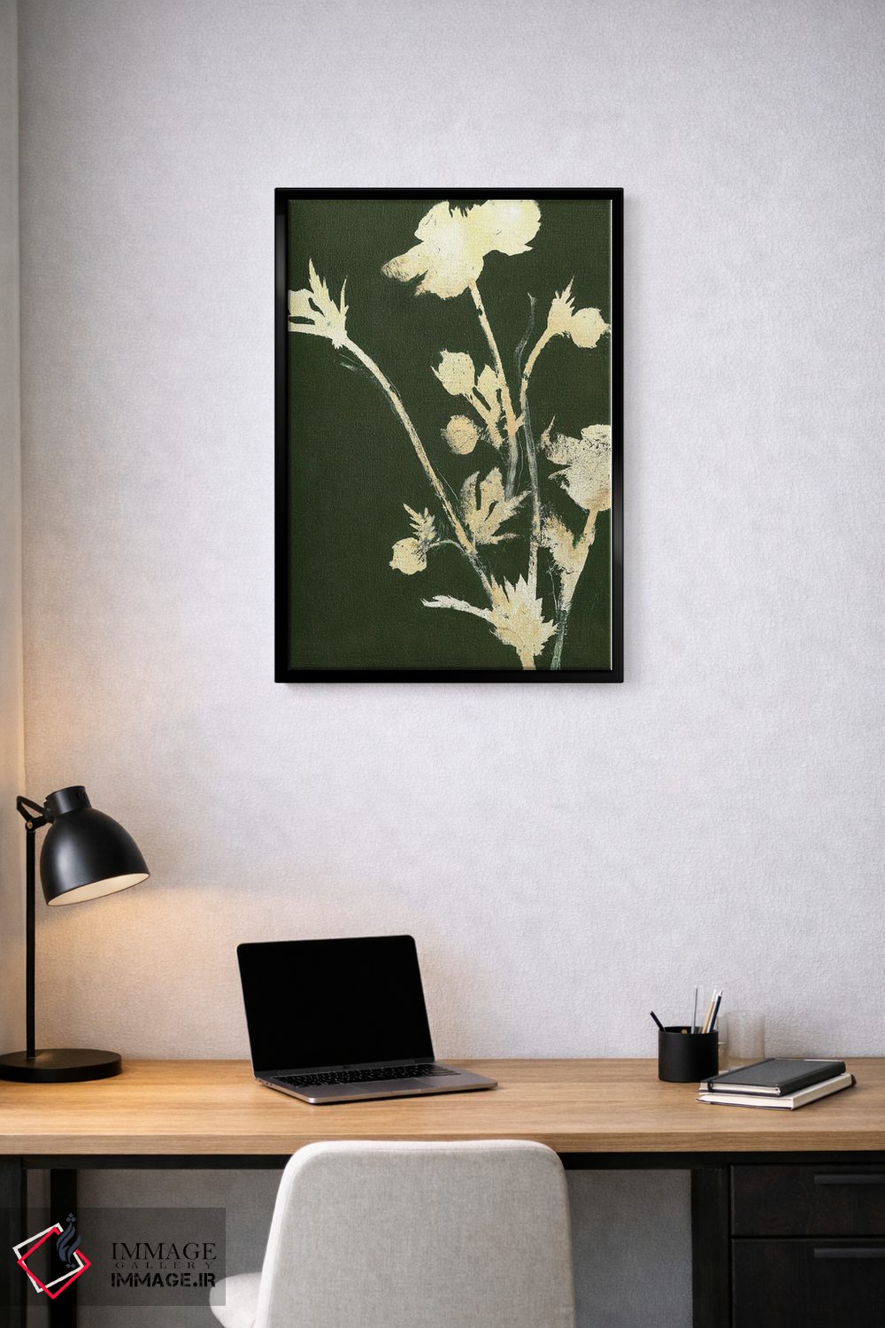 براساس پالت سرد اثر، قاب بلوط روشن (چوبی) پیشنهاد اول است و استخوانی ملایم مکمل. برای سفارشهای پروژهای با ابعاد و قابهای اختصاصی با ایماژ در تماس باشید.