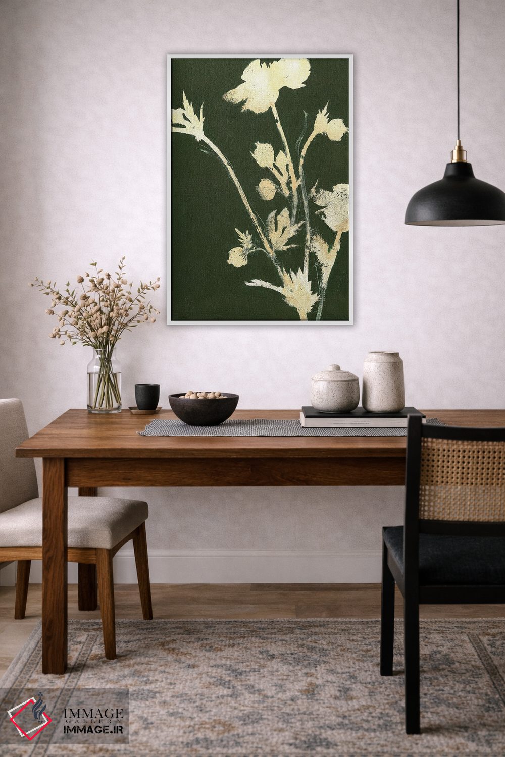 بوم گالری ایماژ طوری طراحی شده که اثر روی دیوار «پرداختشده» و حرفهای دیده شود—نه پرزرقوبرقِ بیپایه؛ بلکه دقیق و خوشپرداخت. بافت ظریف کنواس کمک میکند حس اثر هنری را در نگاه نزدیک نگه میدارد و همین «پرداخت» تفاوت را میسازد. قابپذیری کمک میکند تا بتواند اثر را نقطهٔ کانونی محیط کند و برای فضاهای رسمیتر هم انتخاب مطمئنی است. برای سفارش اندازه یا قاب متفاوت، تیم ایماژ راهنمایی میکند تا انتخاب نهایی هماهنگتر باشد؛ و اگر بخواهید، میتوان چیدمان را برای گالریوال هم پیشنهاد داد.