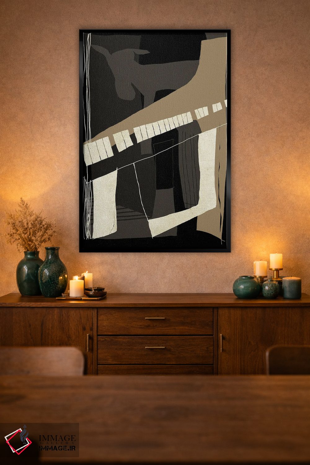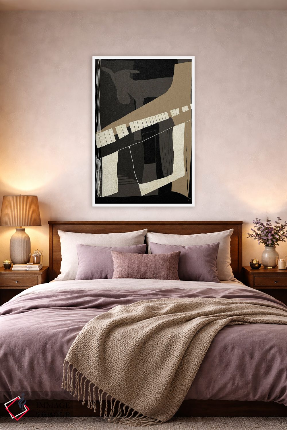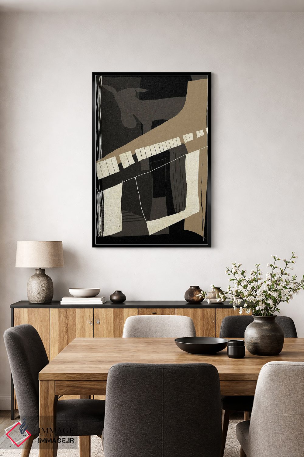 تابلو انتزاعی بز پیانو می نوازد اثر دیزاین فابریکن - نمای روبه‌رو روی دیوار