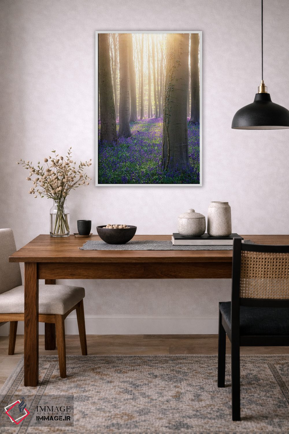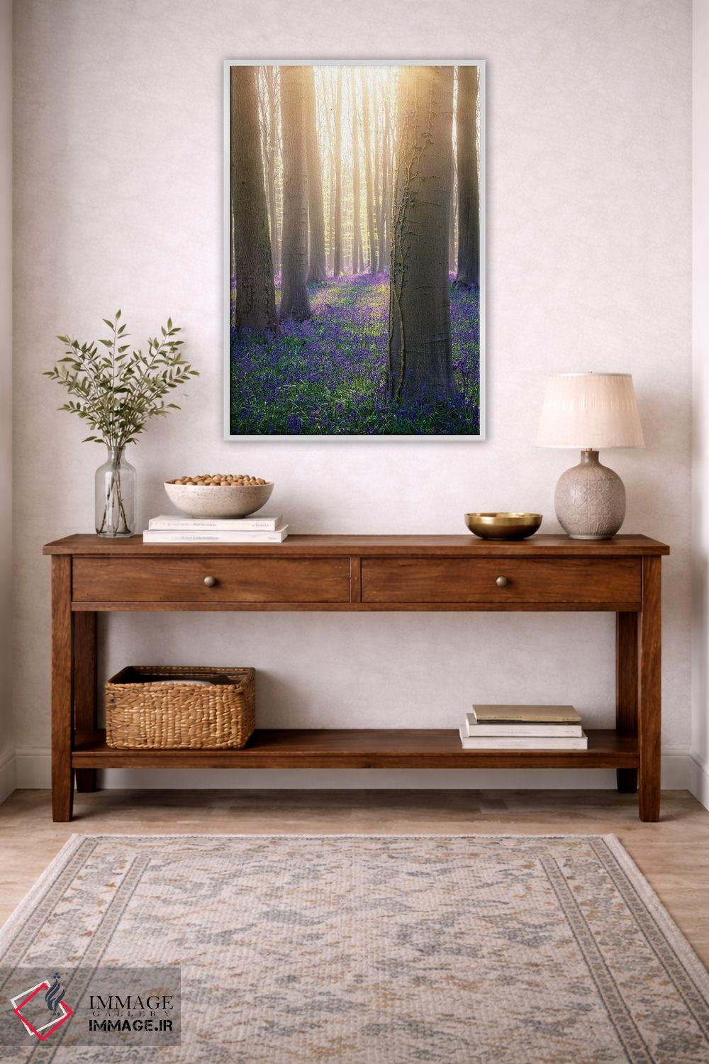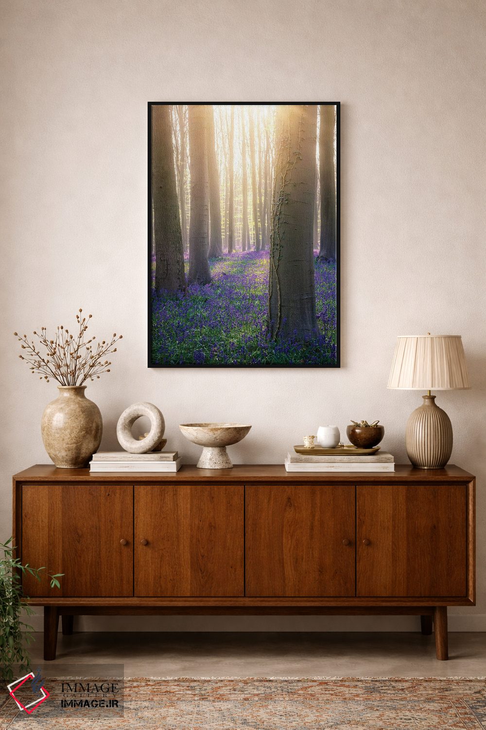 در نگاه اول، «هالر بس (جنگل مشهور بلژیک)» اثرِ «فابیو آنتنور» چیدمان را از حالت پراکنده خارج میکند؛ برای اتاق خوابهای آرام و روشن پیشنهاد میشود. اگر میخواهید یک اثر همیشه «بهروز» بماند، انتخاب خوبیست.