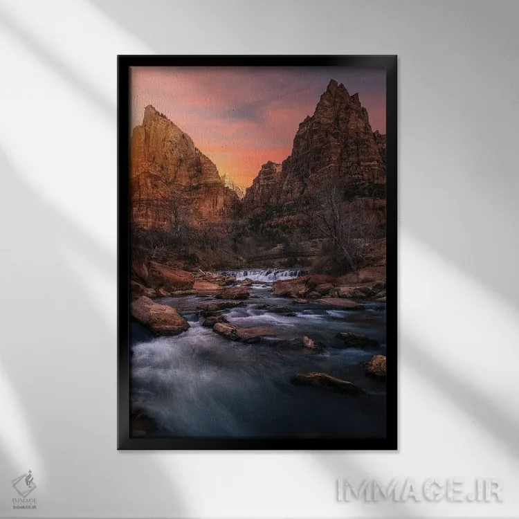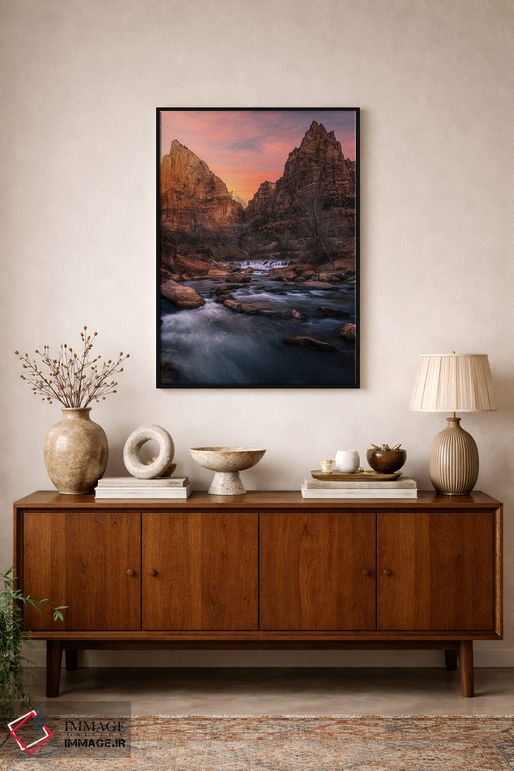 براساس پالت ترکیبی اثر، قاب تیک گرم (چوبی) پیشنهاد اول است و مشکی مات (فریم متوسط) مکمل. برای سفارشهای پروژهای با ابعاد و قابهای اختصاصی با ایماژ در تماس باشید.