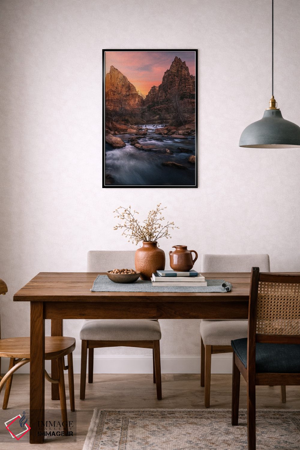 بوم گالری ایماژ طوری طراحی شده که اثر روی دیوار «پرداختشده» و حرفهای دیده شود—نه پرزرقوبرقِ بیپایه؛ بلکه دقیق و خوشپرداخت. بافت ظریف کنواس کمک میکند حس اثر هنری را در نگاه نزدیک نگه میدارد. ارائهی آماده نصب کمک میکند تجربهی نصب را ساده و بیدردسر میکند و برای فضاهای رسمیتر هم انتخاب مطمئنی است. حاصل کار، یک تابلو خوشنشین است که هم از دور اثرگذار است و هم از نزدیک خوشخوان؛ در کنار نورپردازی درست، جلوهی گالریوار بیشتری حس میشود. در کنار چوب و متریالهای طبیعی، بافت کنواس دلنشینتر دیده میشود.