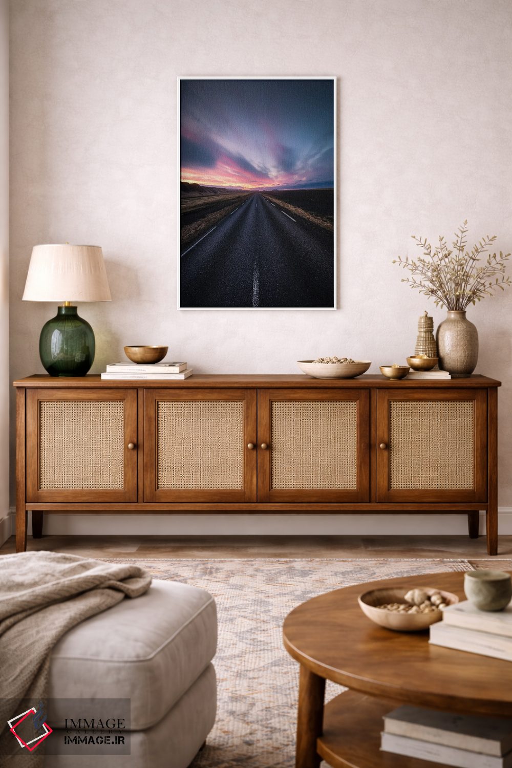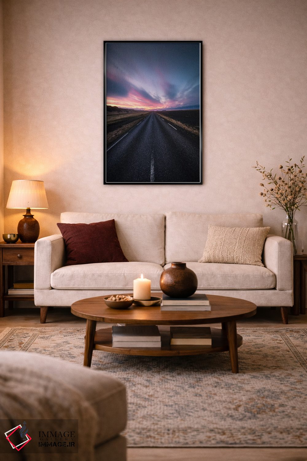 بوم گالری ایماژ نسخهی چیدماناتیوِ سطحبالا از یک اثر هنری است. روی کنواس سفیدِ یکدست و بدون اسید با فرآیند چاپ حرفهای جیکلی (Giclée) و کنترل دقیق تونها با رنگهای آرشیوی UltraChrome HDR برای طبیعیتر دیده شدن رنگها روی دیوار؛ رنگها روی دیوار متعادلتر و سایهها جزئیتر دیده میشوند. تابلو پس از آمادهسازی روی کلاف کشیده میشود و نصب آن ساده و بیدردسر است.