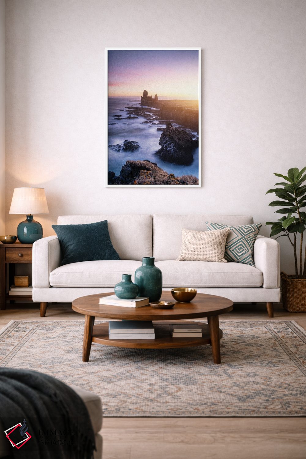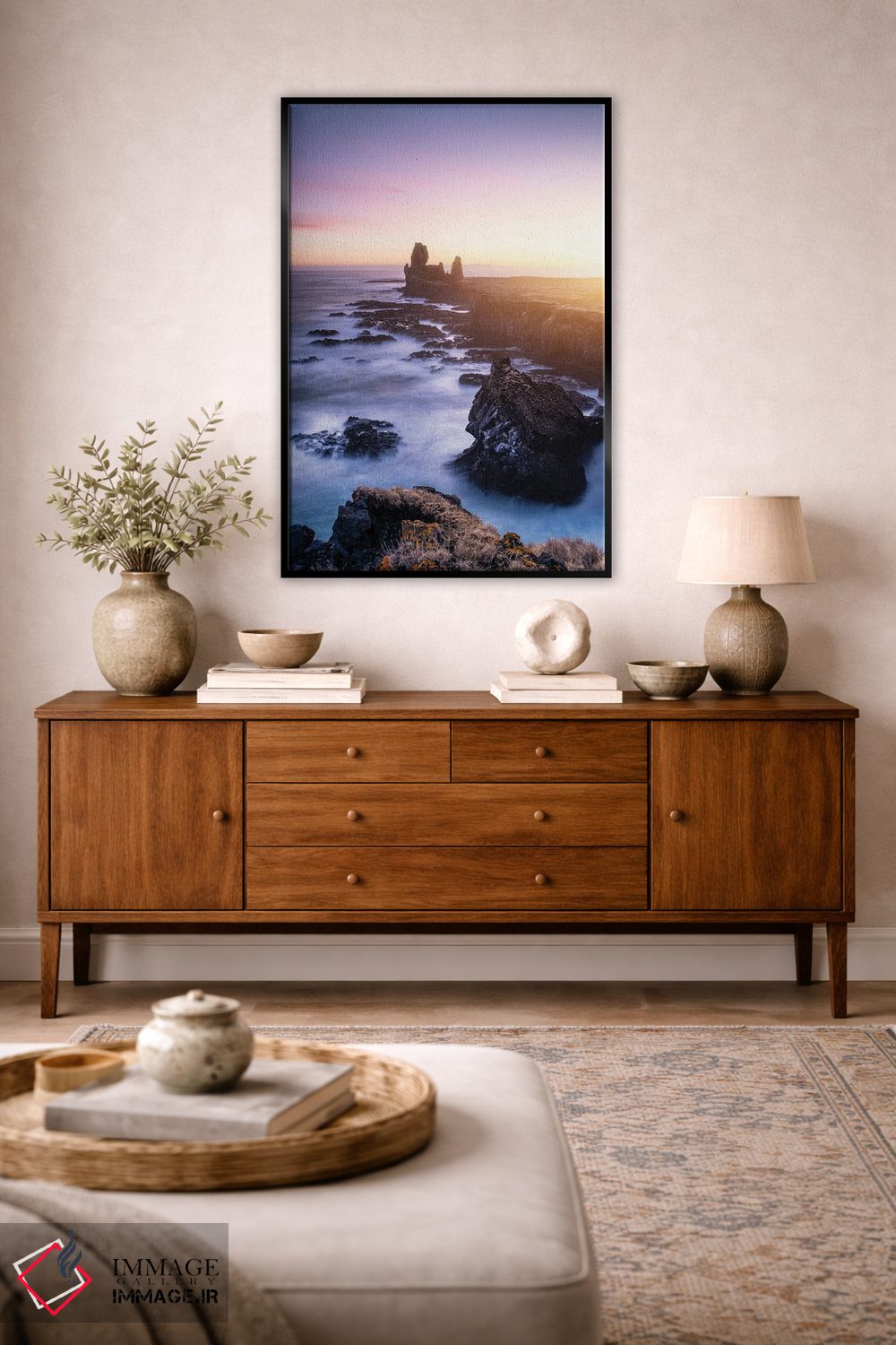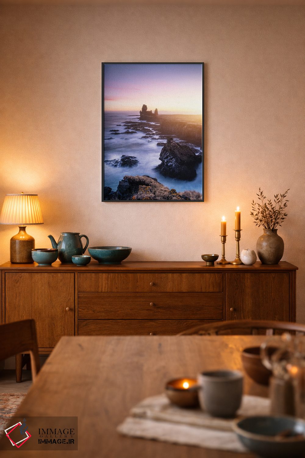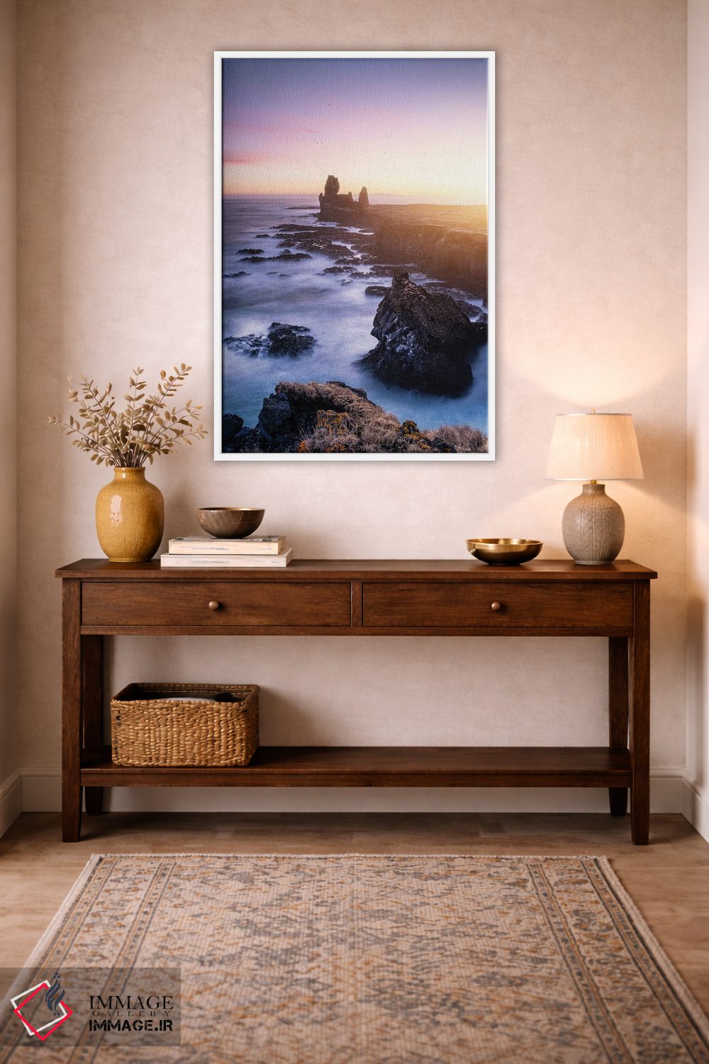 بوم گالری ایماژ طوری طراحی شده که اثر روی دیوار «پرداختشده» و حرفهای دیده شود—نه پرزرقوبرقِ بیپایه؛ بلکه دقیق و خوشپرداخت. بافت ظریف کنواس باعث میشود حس اثر هنری را در نگاه نزدیک نگه میدارد. با کنترل تونها، تعادل بهتری بین نور و رنگ ایجاد میکند. در نهایت، نتیجه چیزی شبیه تفاوت نسخهی معمولی با نسخهی باکیفیتتر است: نه رنگِ بیشتر، بلکه پرداخت بهتر؛ اگر فضا مینیمال است، همین پرداخت تمیز کافی است.