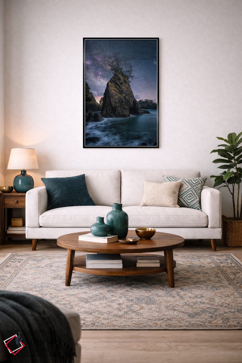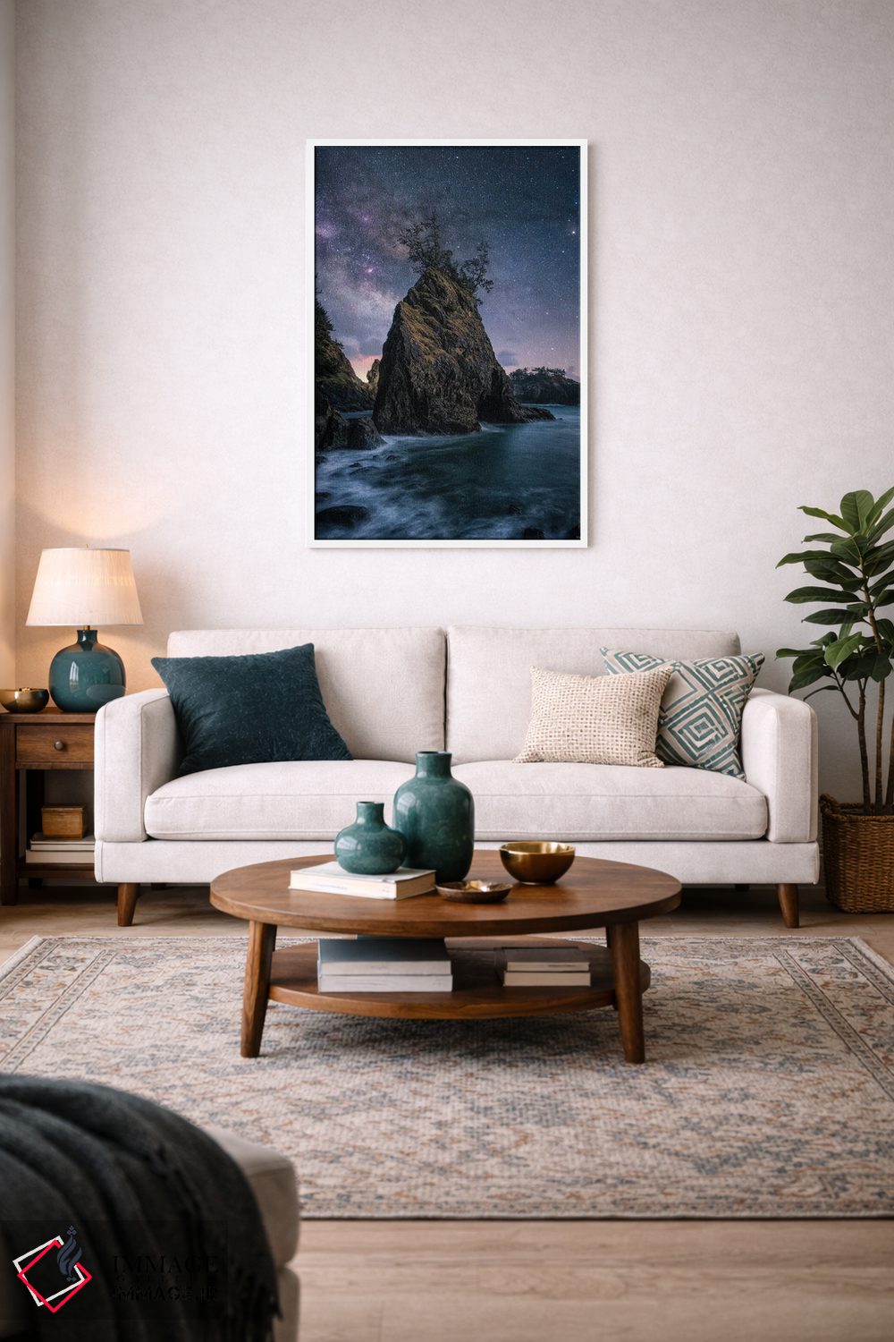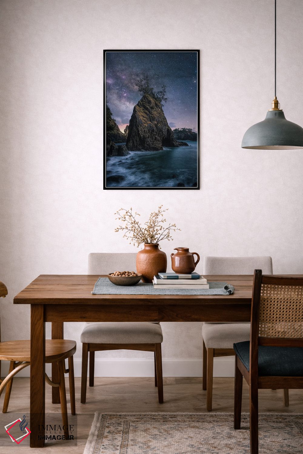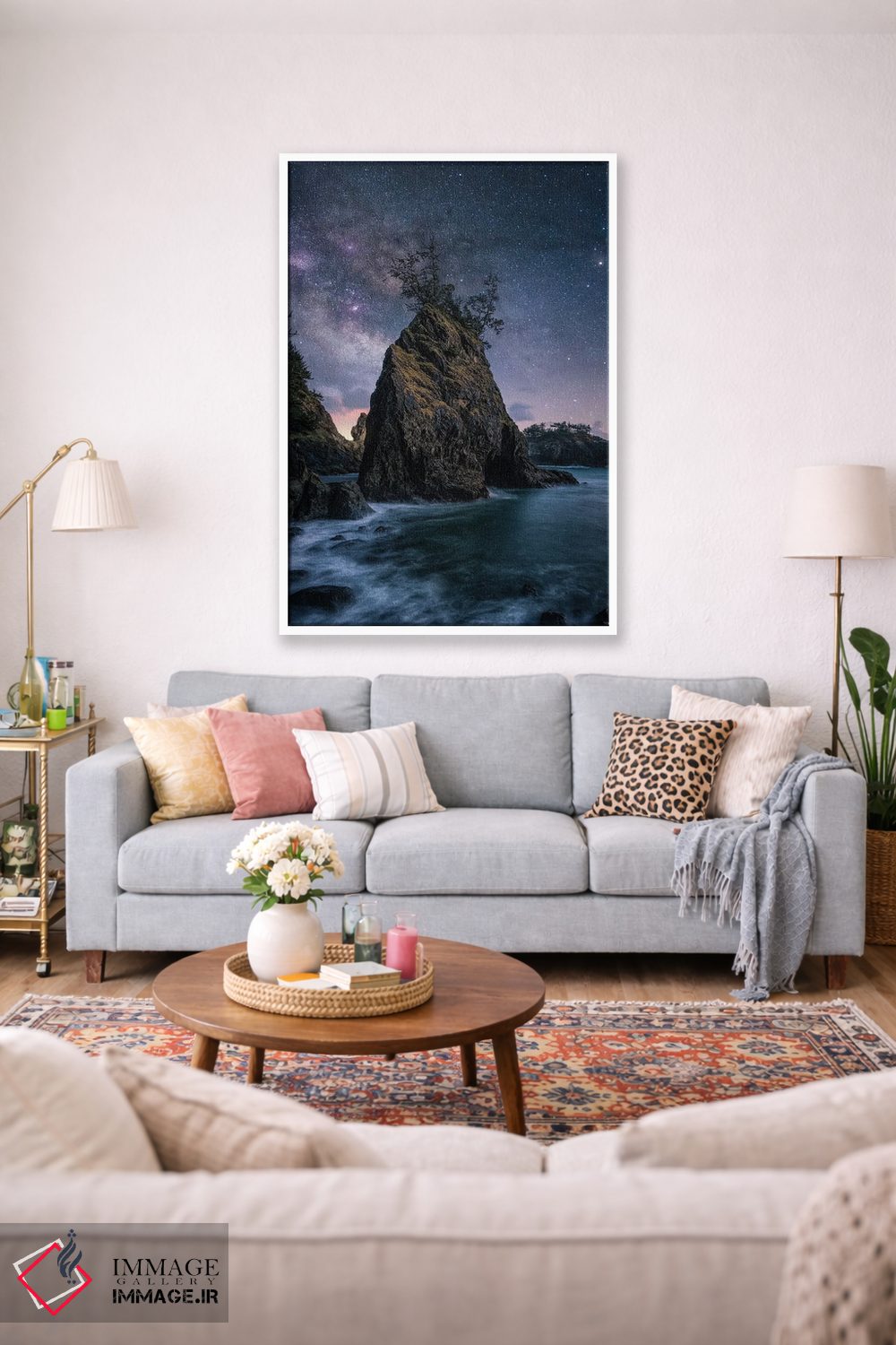 بوم گالری ایماژ نسخهی چیدماناتیوِ باکیفیت از یک اثر هنری است؛ روی کنواس سفیدِ یکدست و بدون اسید با اجرای چاپ هنری جیکلی (Giclée) برای آرتپرینتهای جدی با رنگدانههای آرشیوی و سیستم رنگ دقیق، حس نهایی نزدیکتر به ارائهی گالریوار است؛ نه صرفاً یک تصویر. کلافکشی مرتب و یراق نصب استاندارد، تجربهی نصب را ساده میکند.
