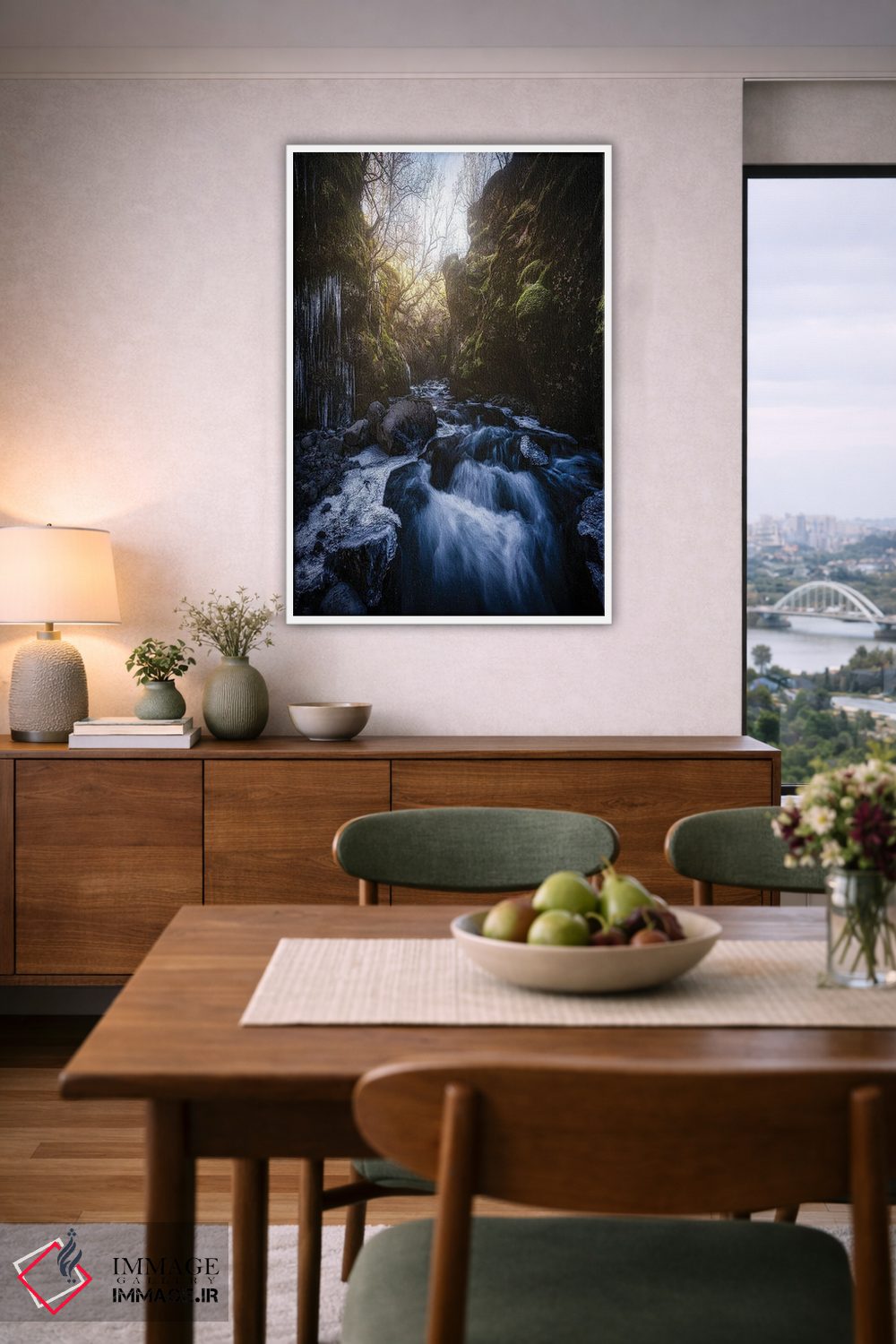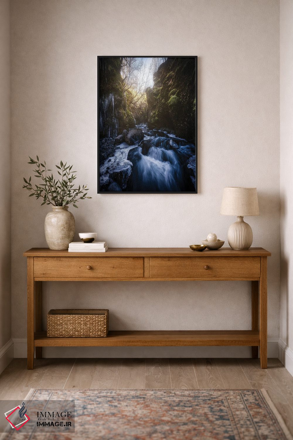 بوم گالری ایماژ نسخهی دکوراتیوِ سطحبالا از یک اثر هنری است؛ روی کنواس سفیدِ یکدست و بدون اسید با اجرای چاپ هنریِ دقیق به روش جیکلی (Giclée) با رنگهای آرشیوی UltraChrome HDR برای طبیعیتر دیده شدن رنگها روی دیوار، حس نهایی نزدیکتر به ارائهی گالریوار است؛ نه صرفاً یک تصویر. کلافکشی مرتب و یراق نصب استاندارد، تجربهی نصب را ساده میکند. امکان انتخاب قاب از گزینههای سایت وجود دارد و برای سفارشهای ویژه هم میتوانید با ایماژ هماهنگ کنید.