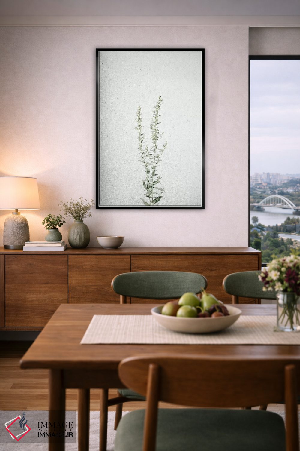 براساس پالت خنثی اثر، قاب مشکی مات (فریم باریک) پیشنهاد اول است و سفید مات (فریم باریک) مکمل. برای سفارشهای پروژهای با ابعاد و قابهای اختصاصی با ایماژ در تماس باشید.