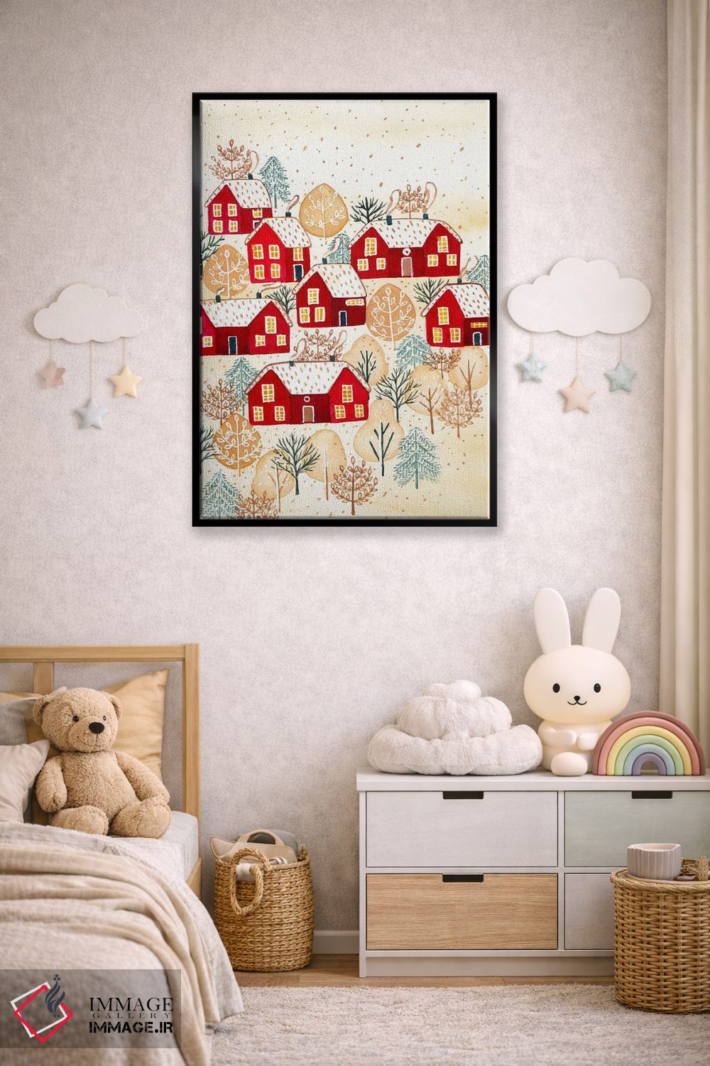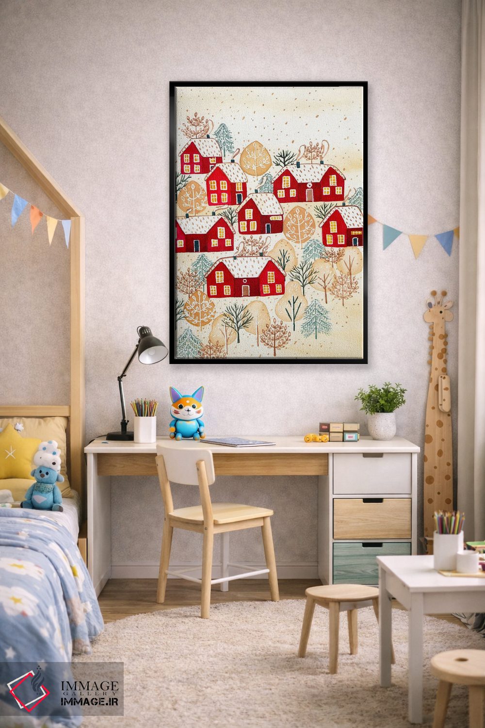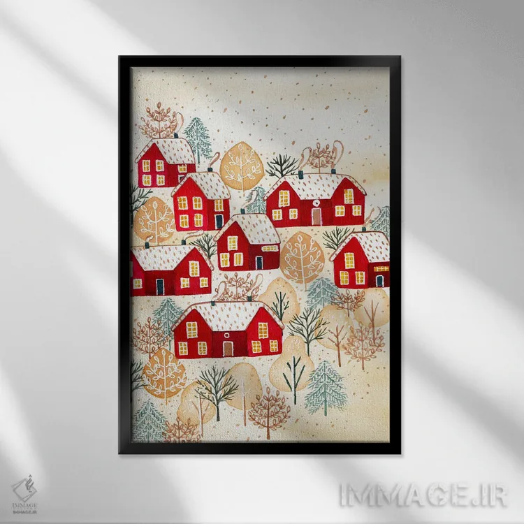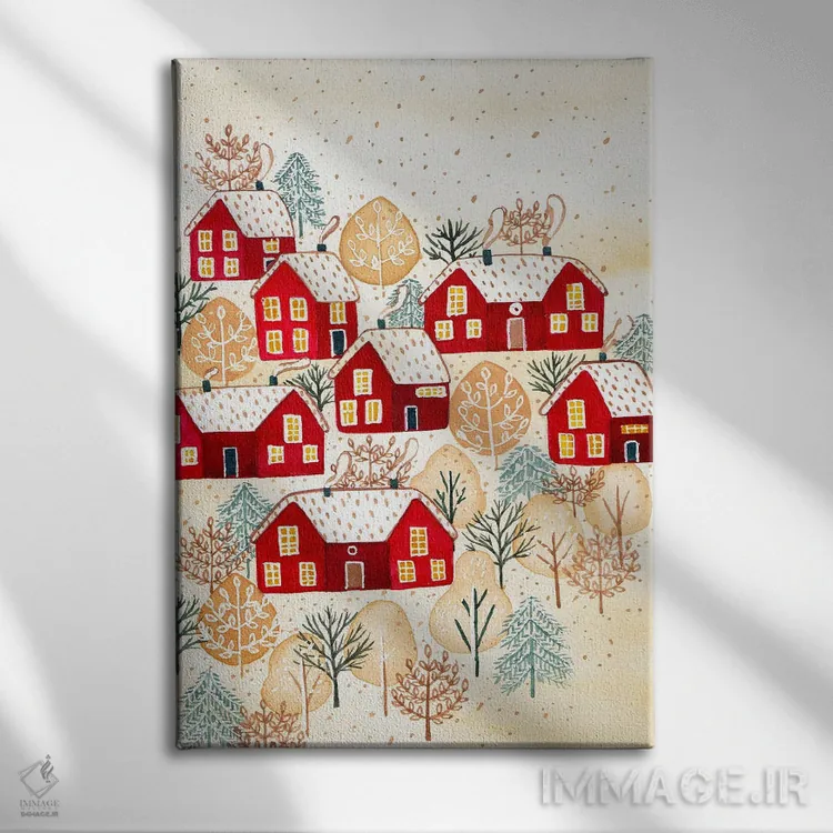 تابلو دکوراتیو روستای طلایی زمستانی اثر اف ان کی دیزاینز