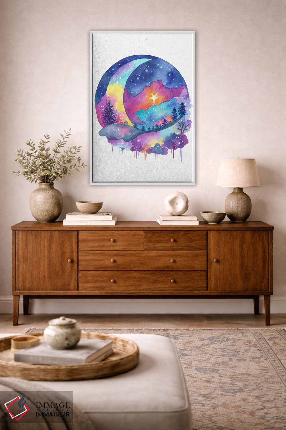 بوم گالری ایماژ نسخهی دکوراتیوِ سطحبالا از یک اثر هنری است؛ روی کنواس بدون اسید با بافت ظریف و یکنواخت با فرآیند چاپ حرفهای جیکلی (Giclée) و کنترل دقیق تونها با رنگدانههای آرشیوی و سیستم رنگ دقیق، رنگها روی دیوار متعادلتر و سایهها جزئیتر دیده میشوند. هر تابلو بهصورت سفارشی روی چهارچوب کشیده میشود و با یراق مناسب آمادهی نصب است. امکان انتخاب قاب از گزینههای سایت وجود دارد و برای سفارشهای ویژه هم میتوانید با ایماژ هماهنگ کنید.