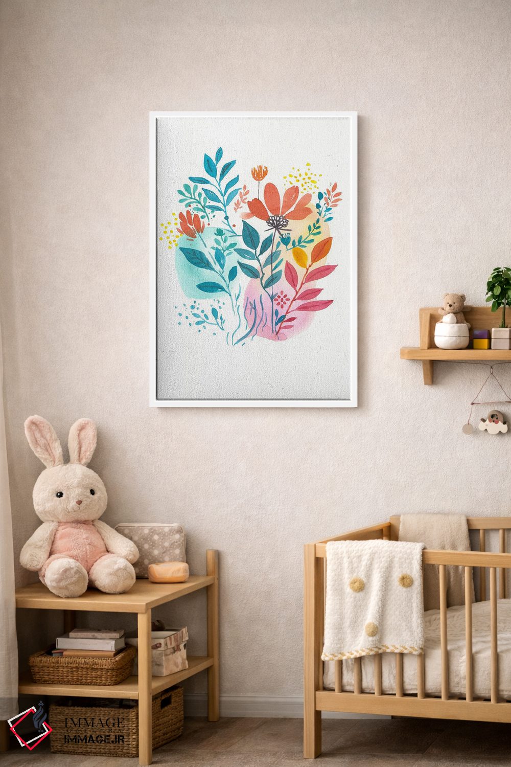 تابلو دکوراتیو گل های ساده اثر اف ان کی دیزاینز - نمای روبه‌رو روی دیوار