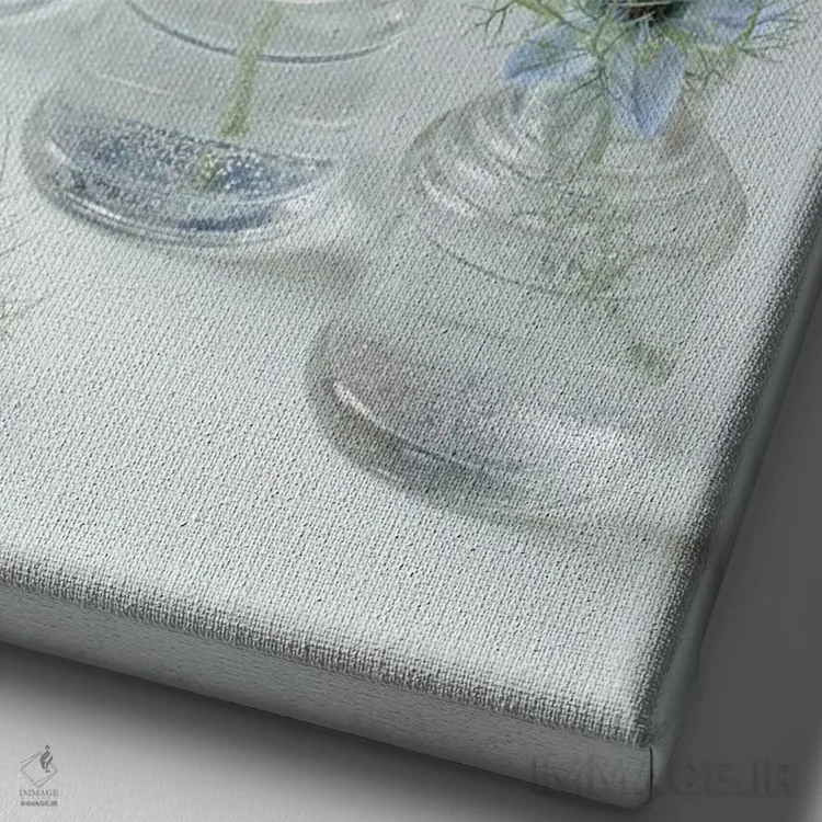 تابلو دکوراتیو طبیعت بی جان گل های نایجلا اثر آلیسون فنل - نمای نزدیک بافت بوم