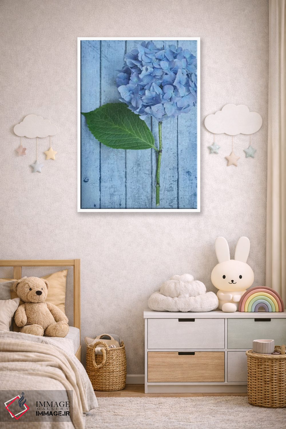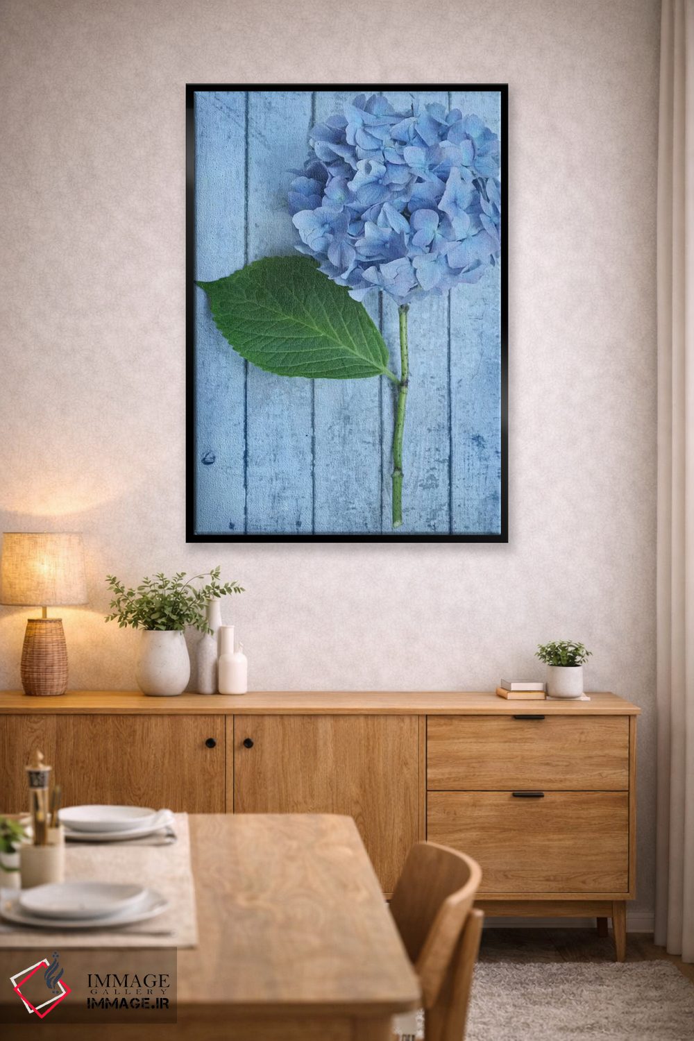 اگر به دکورهای طبیعی علاقه دارید، «ادریسی آبی پودری» اثرِ «آلیسون فنل» حس طراوت را بدون شلوغی وارد اتاق میکند، برای دکورهای اسکانباوراوی گزینهٔ مناسبیست. در کنار گیاهان آپارتمانی، هماهنگتر هم میشود.