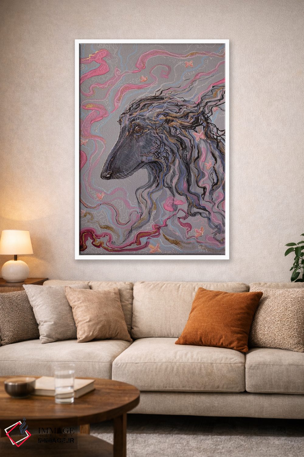 در دکورهای مدرن، صورتی را در قاب تصویرهای کناری در نظر بگیرید تا نگاه به سمت اثر هدایت شود. انتخاب قاب هم میتواند این اکسنت را تقویت کند.