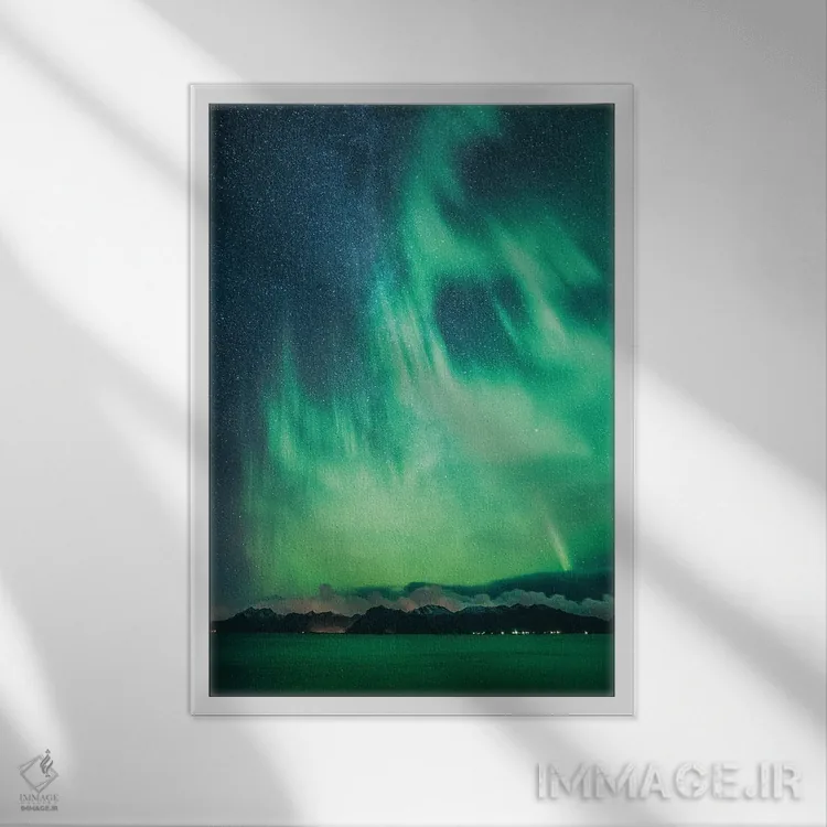 براساس پالت سرد اثر، قاب سفید مات (فریم باریک) پیشنهاد اول است و نقرهای برسخورده (متالیک) مکمل. برای سفارشهای پروژهای با ابعاد و قابهای اختصاصی با ایماژ در تماس باشید.