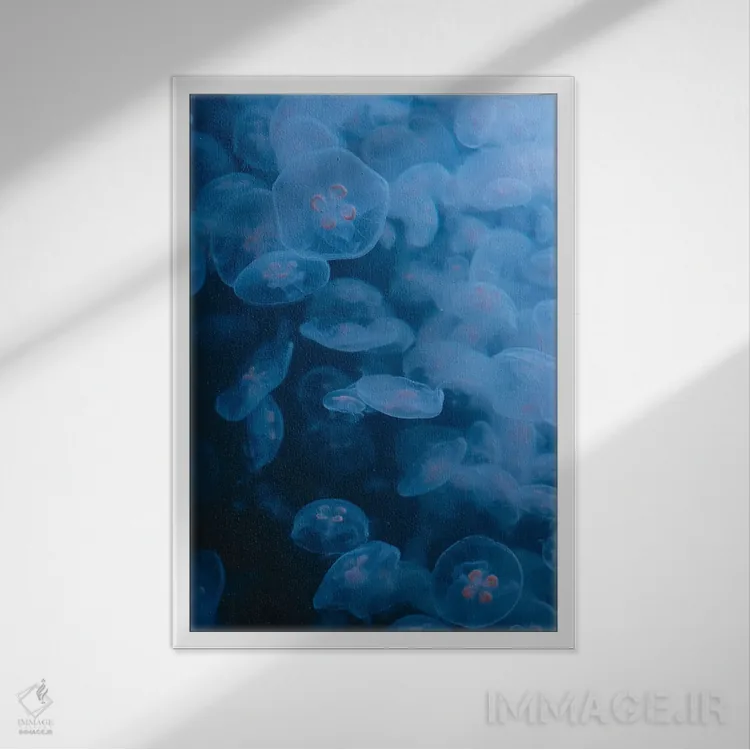 براساس پالت سرد اثر، قاب سفید مات (فریم باریک) پیشنهاد اول است و نقرهای برسخورده (متالیک) مکمل. برای سفارشهای پروژهای با ابعاد و قابهای اختصاصی با ایماژ در تماس باشید.