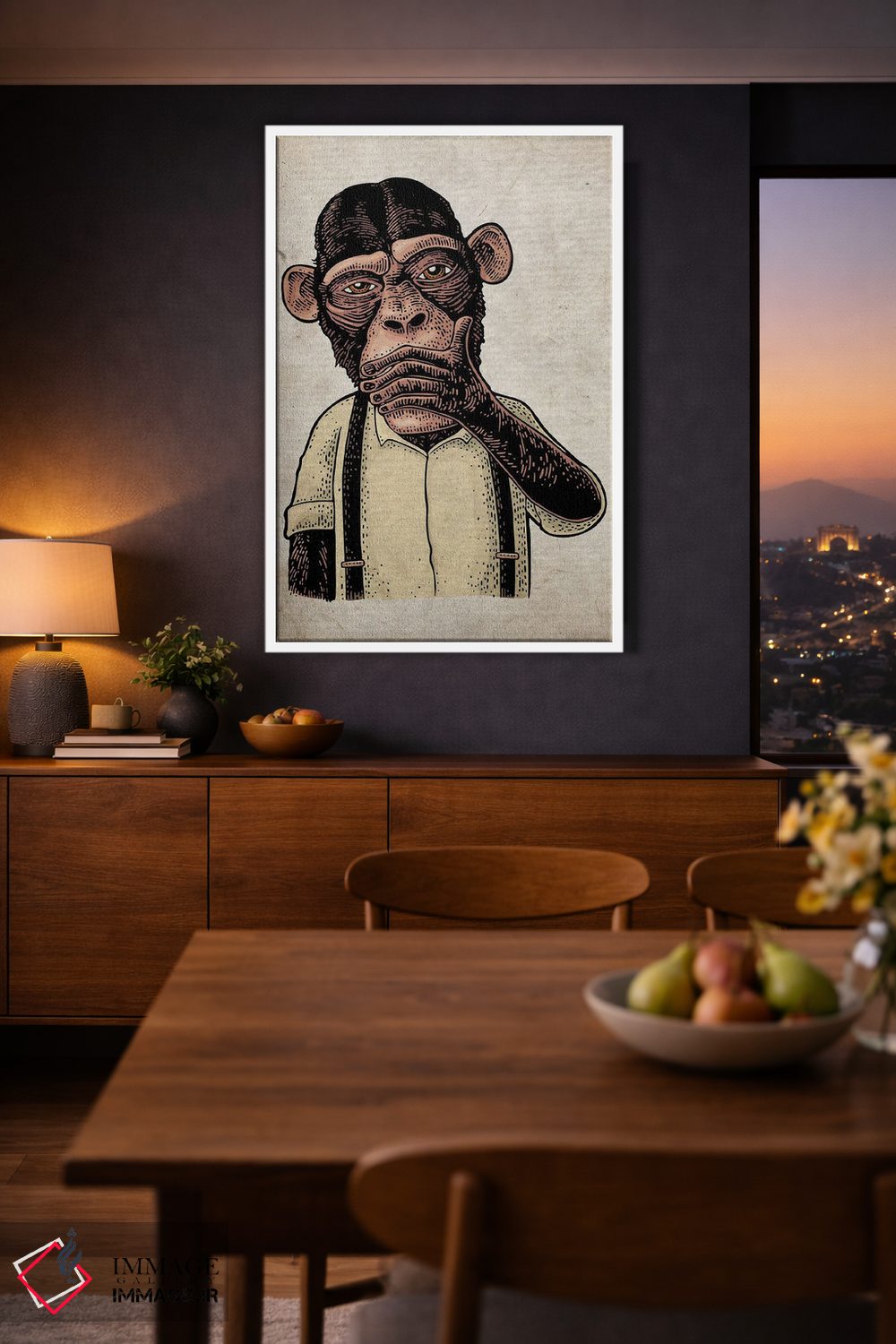 براساس پالت گرم اثر، قاب بلوط روشن (چوبی) پیشنهاد اول است و استخوانی ملایم مکمل. برای سفارشهای پروژهای با ابعاد و قابهای اختصاصی با ایماژ در تماس باشید.