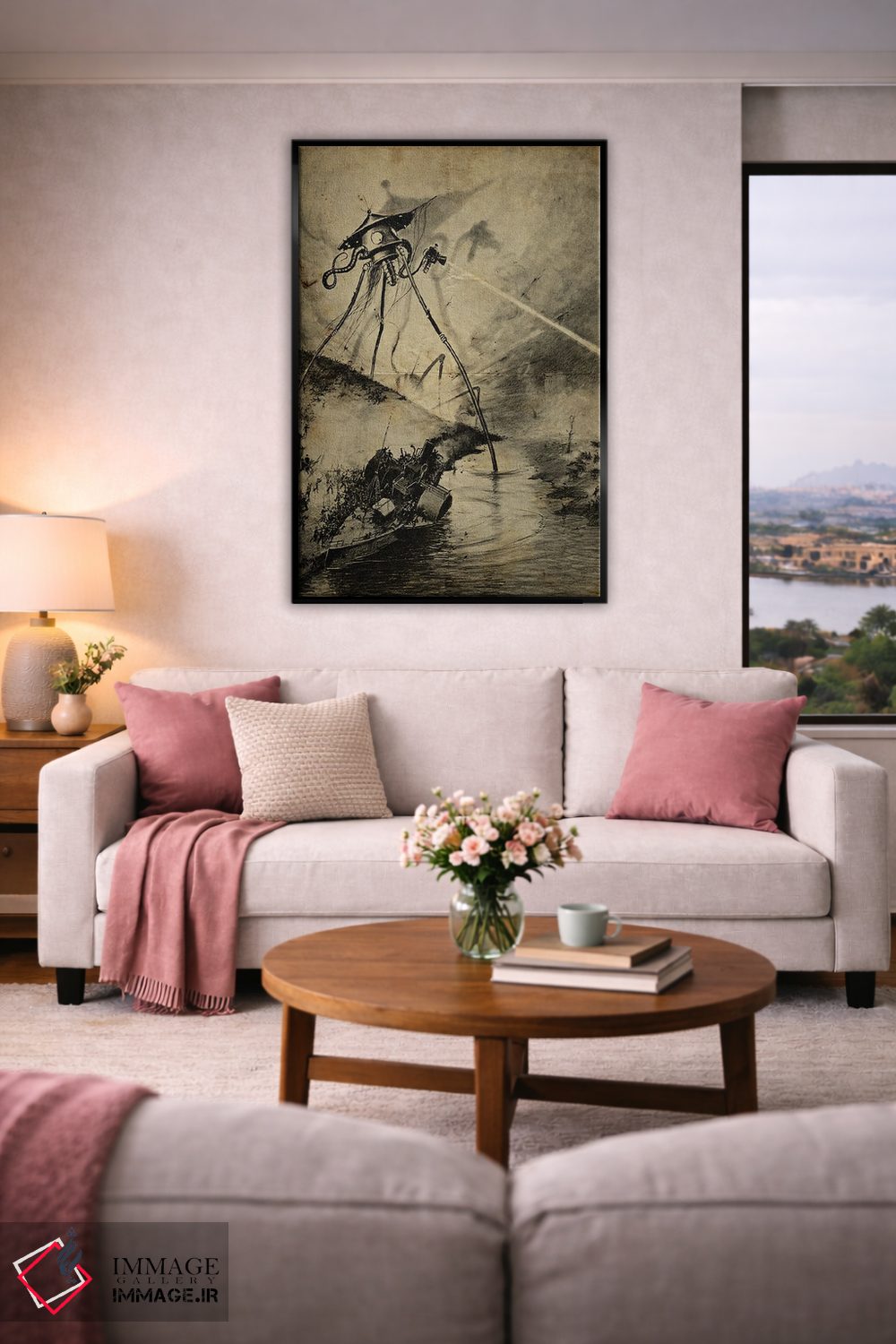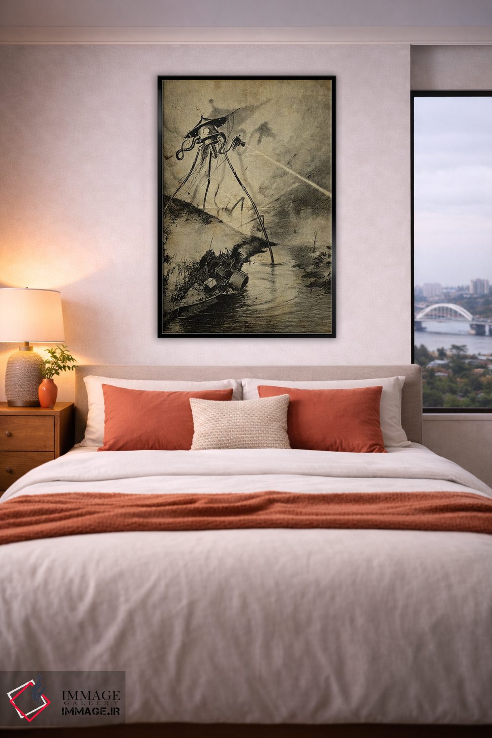«حمله رودخانه جنگ دنیاها» اثرِ «فیشِرکرافت (استودیوی خلاقانه)» با سبک هنری و موضوعِ این اثر، یک انتخاب مدرن و تمیز برای دکور امروز است.
