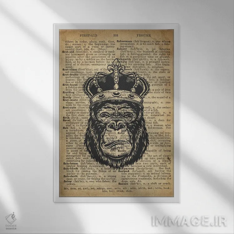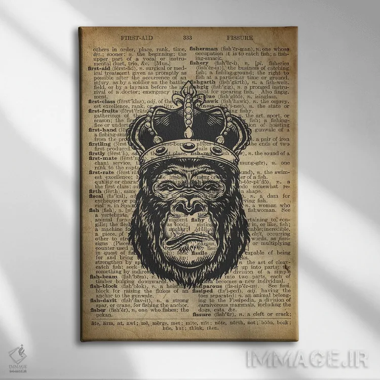 تابلو دکوراتیو پادشاه گوریل روی کاغذ دیکشنر قدیمی اثر فیشرکرافت