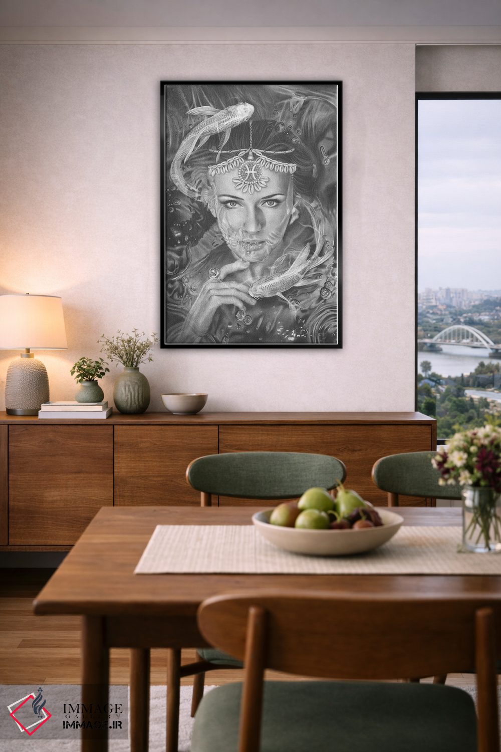 براساس پالت خنثی اثر، قاب مشکی مات (فریم باریک) پیشنهاد اول است و سفید مات (فریم باریک) مکمل. برای سفارشهای پروژهای با ابعاد و قابهای اختصاصی با ایماژ در تماس باشید.