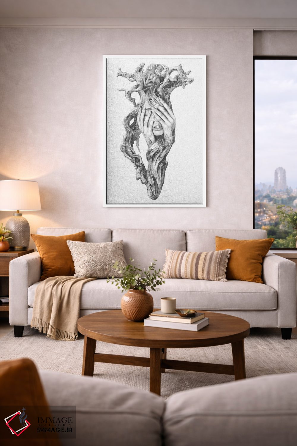 بوم گالری ایماژ نسخهی دکوراتیوِ سطحبالا از یک اثر هنری است؛ روی کنواس سفیدِ یکدست و بدون اسید با چاپ هنری به استاندارد جیکلی (Giclée) با رنگدانههای آرشیوی و سیستم رنگ دقیق؛ روی دیوار، کار یکدستتر و خوشکیفیتتر دیده میشود. اسمبل تمیز و آمادهی نصب؛ کشیدگی استاندارد روی کلاف و یراق مناسب.
