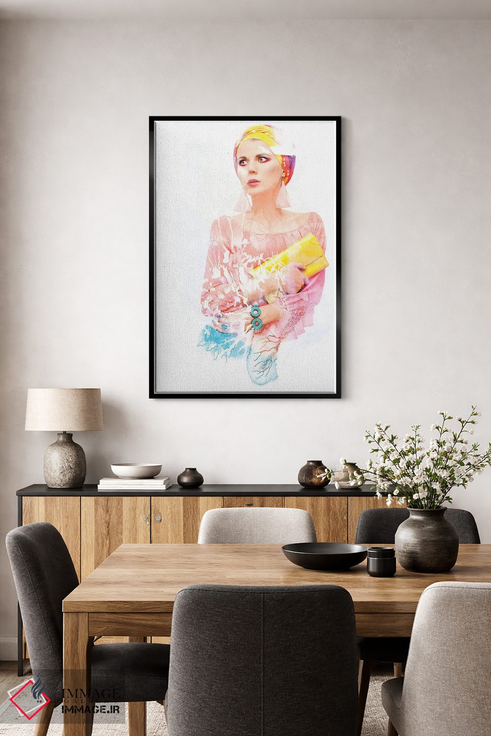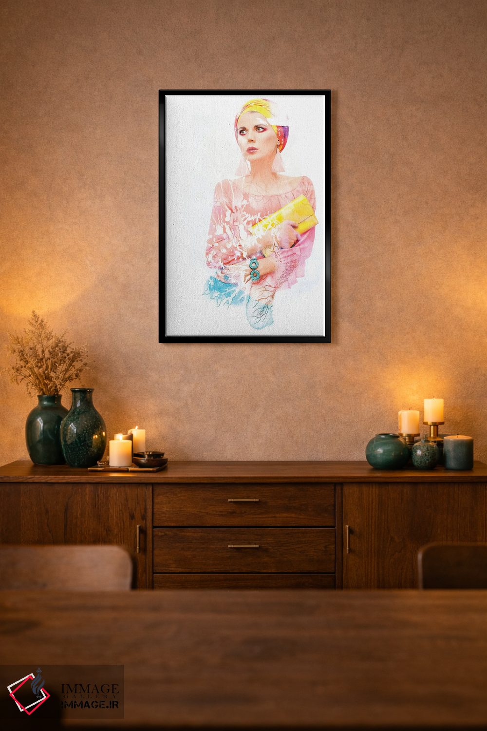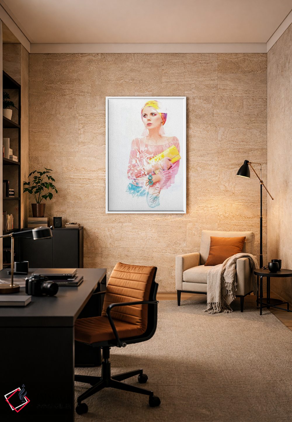 بوم گالری ایماژ نسخهی چیدماناتیوِ باکیفیت از یک اثر هنری است؛ روی کنواس بدون اسید با بافت ظریف و یکنواخت با فرآیند چاپ حرفهای جیکلی (Giclée) و کنترل دقیق تونها با رنگهای آرشیوی UltraChrome HDR برای طبیعیتر دیده شدن رنگها روی دیوار؛ حس نهایی نزدیکتر به ارائهی گالریوار است؛ نه صرفاً یک تصویر. کلافکشی مرتب و یراق نصب استاندارد، تجربهی نصب را ساده میکند. برای قابهای متنوعتر و اندازه سفارشی، تیم ایماژ راهنماییتان میکند.