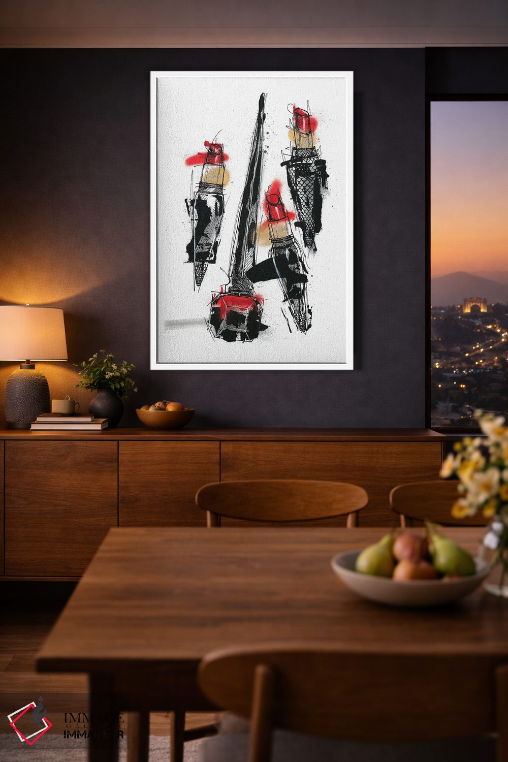براساس پالت گرم اثر، قاب تیک گرم (چوبی) پیشنهاد اول است و مشکی مات (فریم متوسط) مکمل. برای سفارشهای پروژهای با ابعاد و قابهای اختصاصی با ایماژ در تماس باشید.