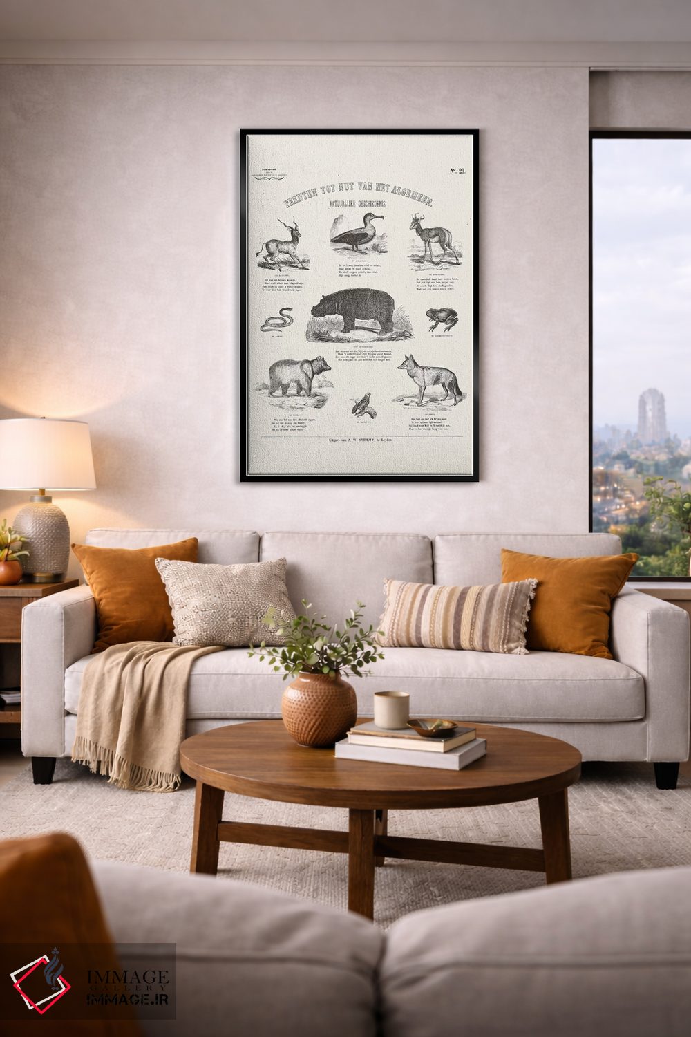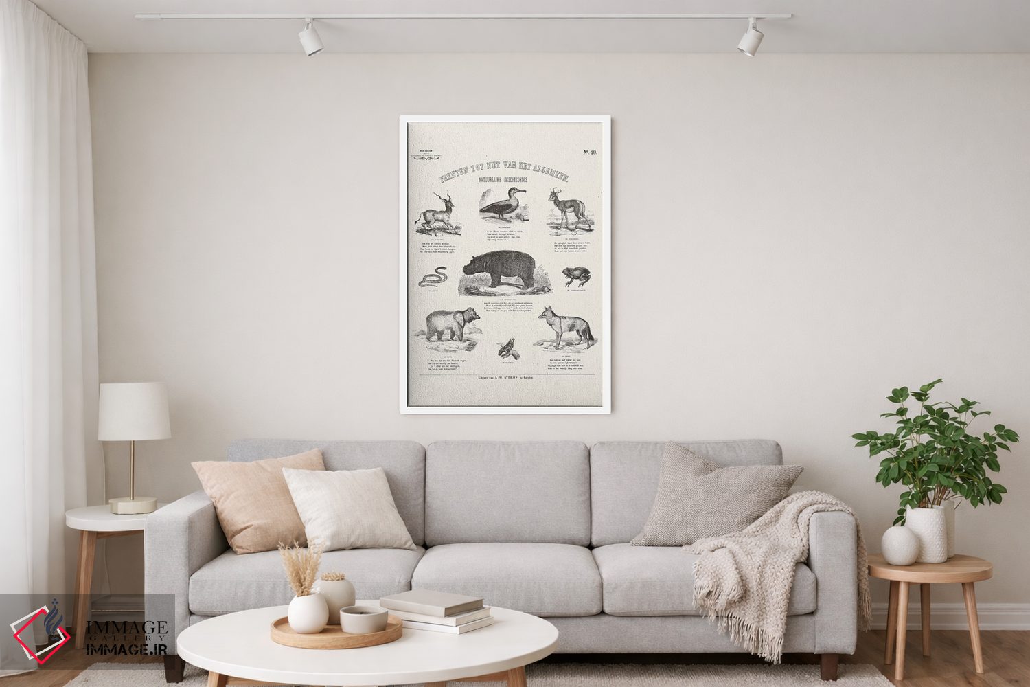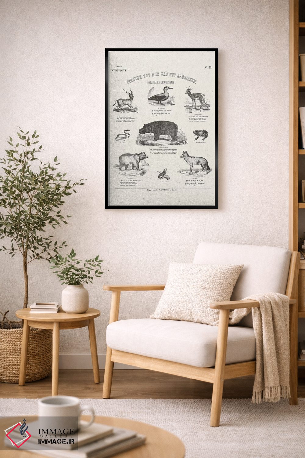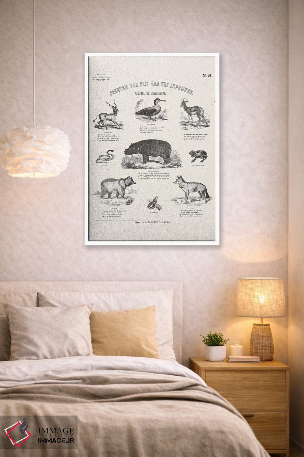 اگر به آثار حیوانات علاقه دارید، «جدول حیوانات (نمودار حیوانات)» اثرِ «فلوران بُدار (هنرمند فرانسوی)» به فضا، گرمیِ ملایم اضافه میکند، برای فضاهای روستیک یا بوهو گزینهٔ مناسبیست. حسش صمیمی است، اما کیفیتش جدی و خوشپرداخت.