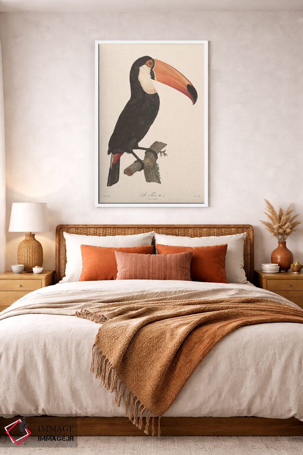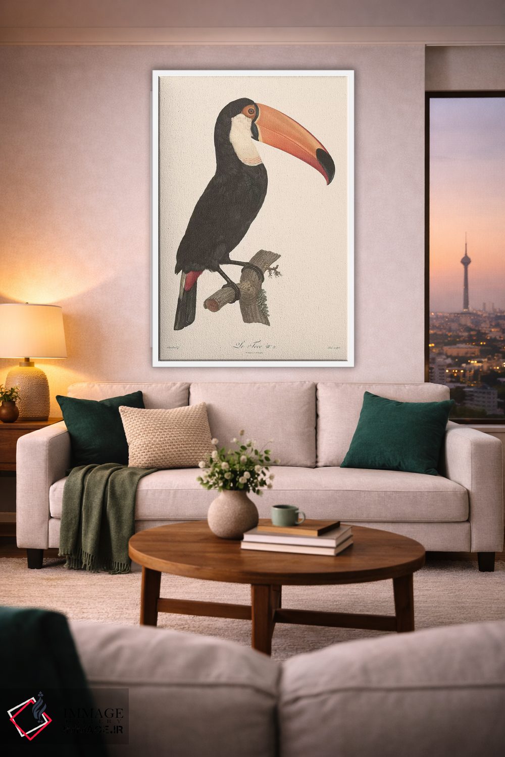 برای اتاقی که به یک عنصر دوستداشتنی نیاز دارد، «لِ توکو (پرنده توکان)» اثرِ «فلوران بُدار (هنرمند فرانسوی)» به دیوار، انرژیِ نرم و زنده میدهد؛ برای کافههای کوچک و صمیمی انتخابی خوشسلیقه است. در کنار گیاهان و نور طبیعی، جذابتر هم میشود.