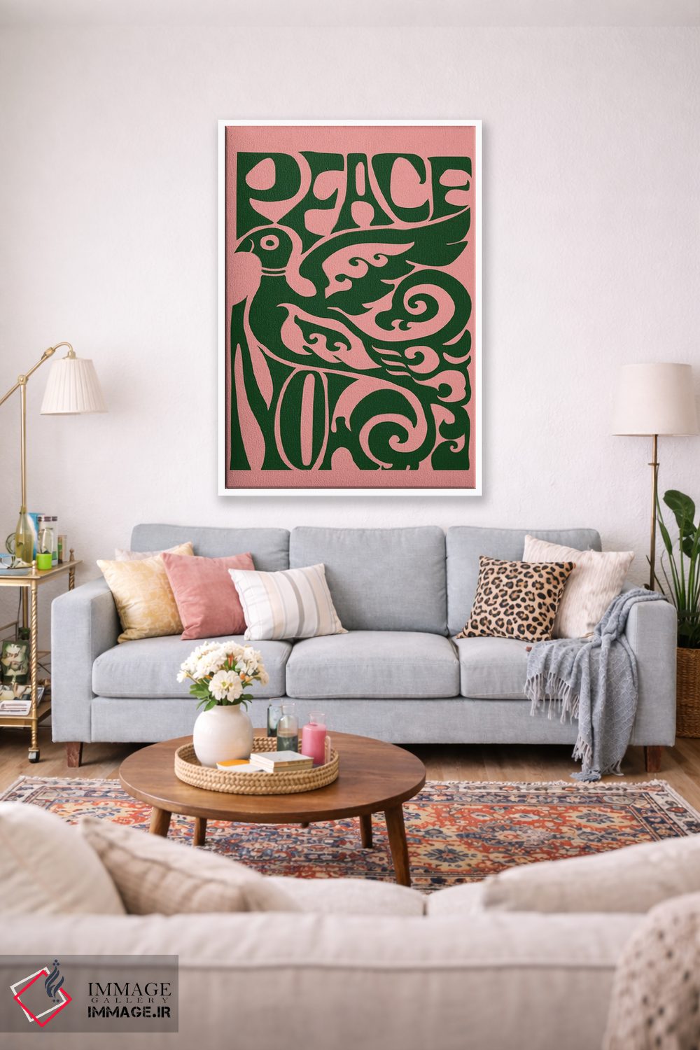 تابلو مینیمال صلح اکنون صورتی اثر فلاور لاو چایلد