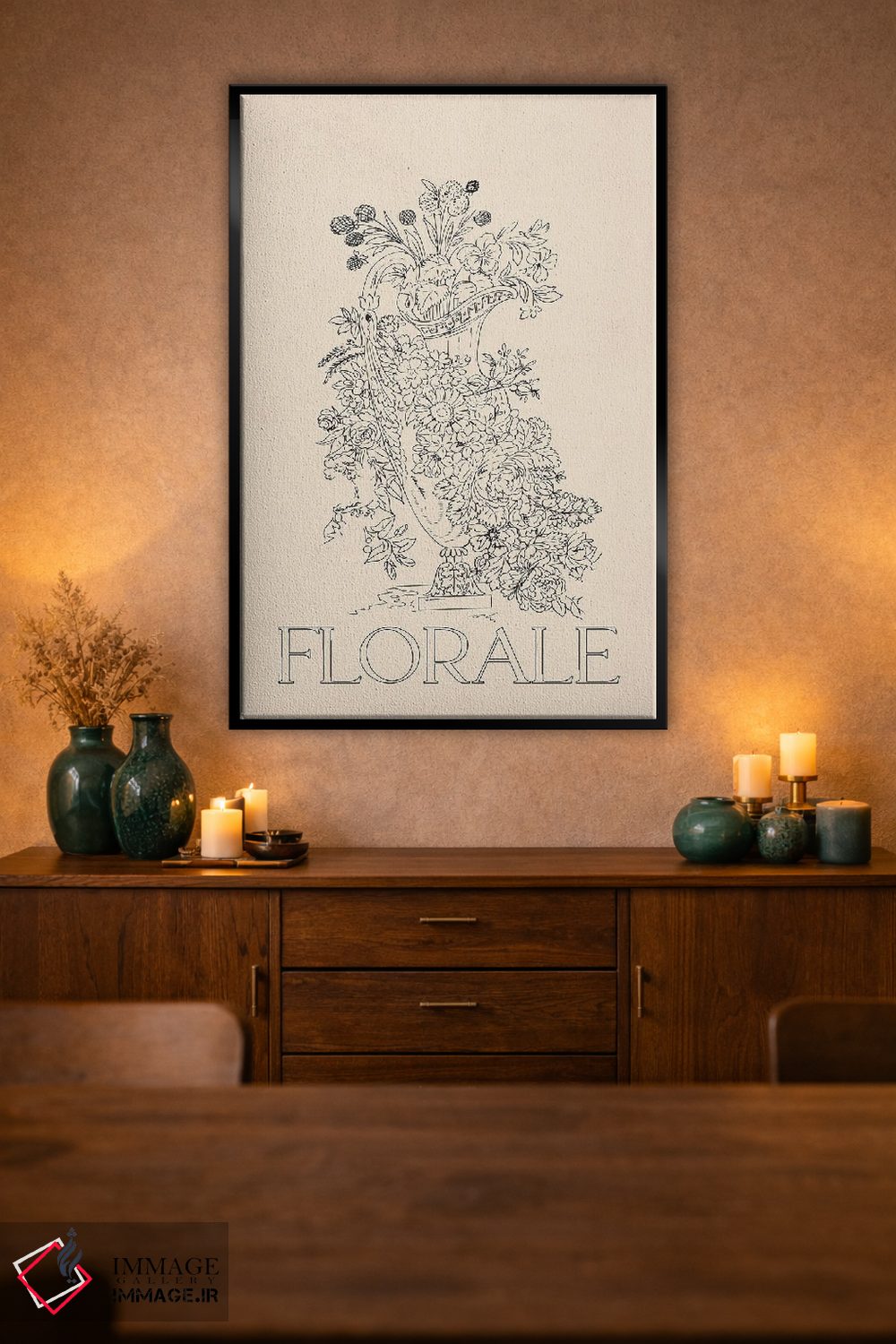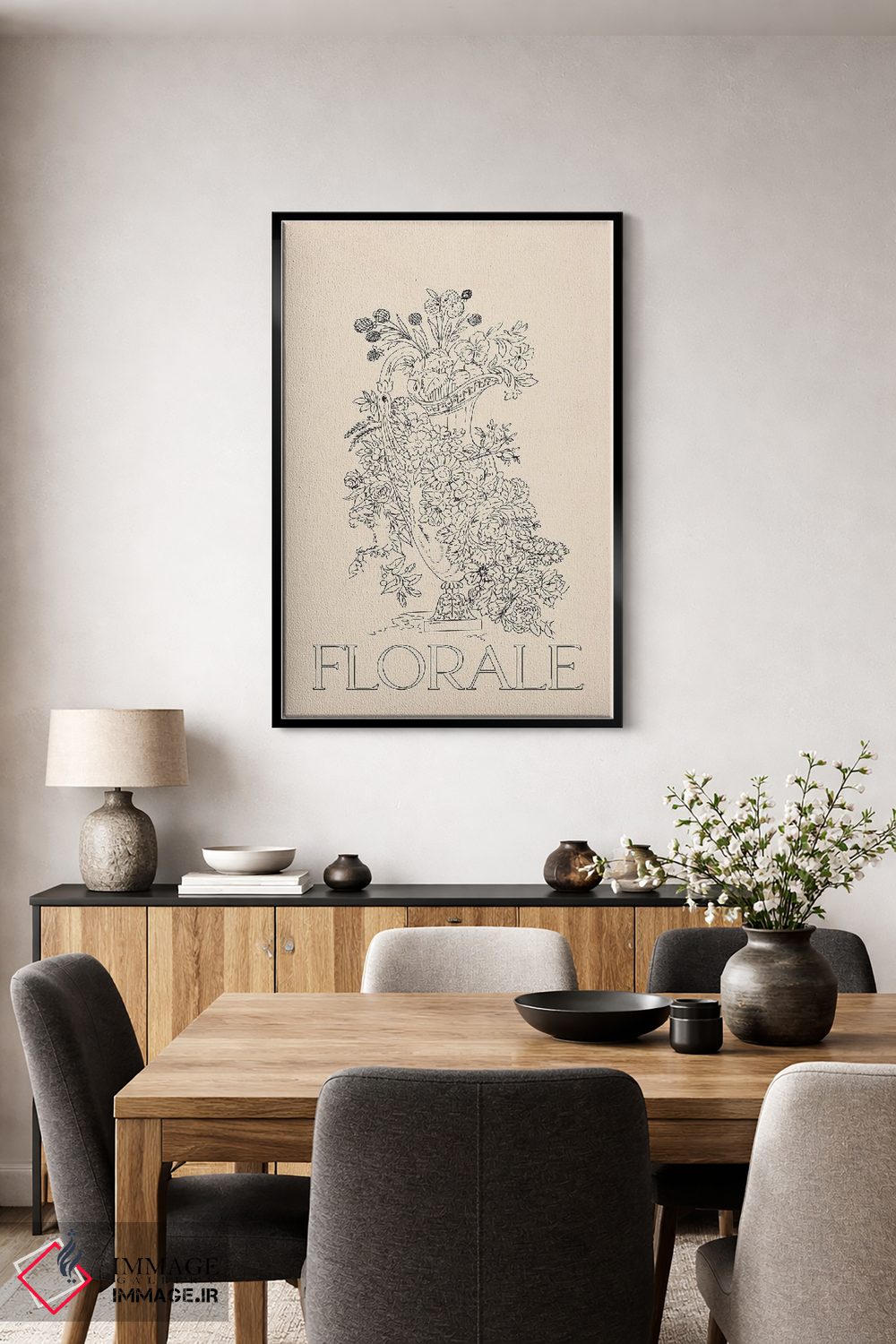 براساس پالت خنثی اثر، قاب بلوط روشن (چوبی) پیشنهاد اول است و استخوانی ملایم مکمل. برای سفارشهای پروژهای با ابعاد و قابهای اختصاصی با ایماژ در تماس باشید.