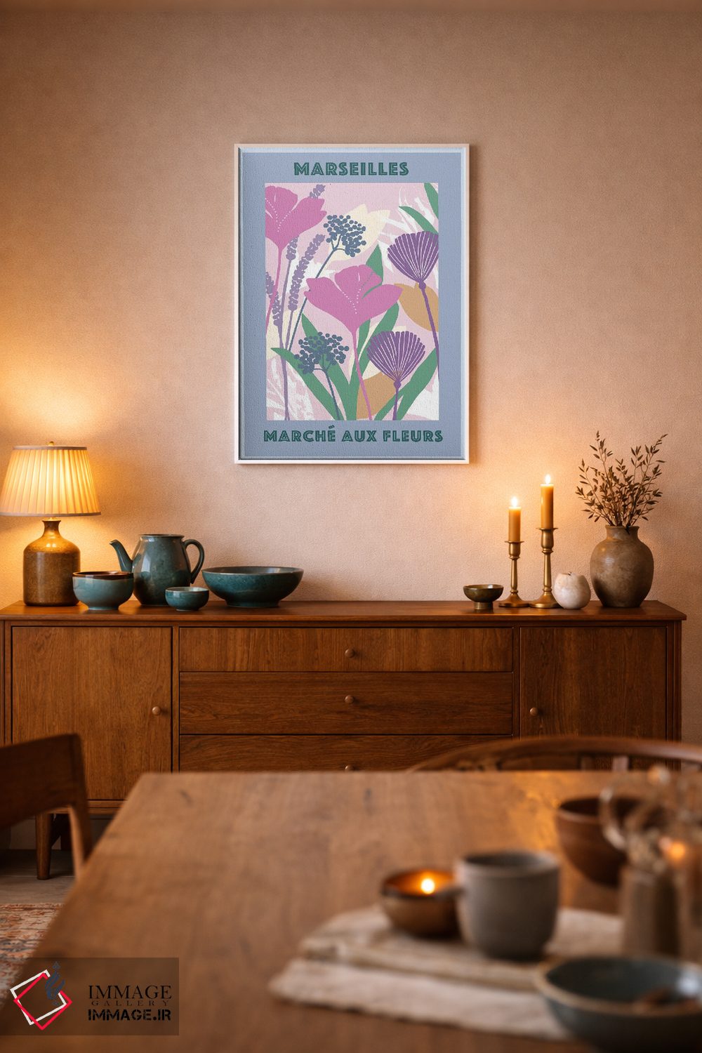 اگر دوست دارید دیوار روشنتر و آرامتر دیده شود، «بازار گل ۳» اثرِ «فلورا کوتا» مثل یک قطعهٔ دکورِ همیشهبهروز عمل میکند، برای راهروهای مینیمال گزینهٔ مناسبیست. اگر دنبال «زیباییِ بیصدا» هستید، این اثر همان حس را دارد.