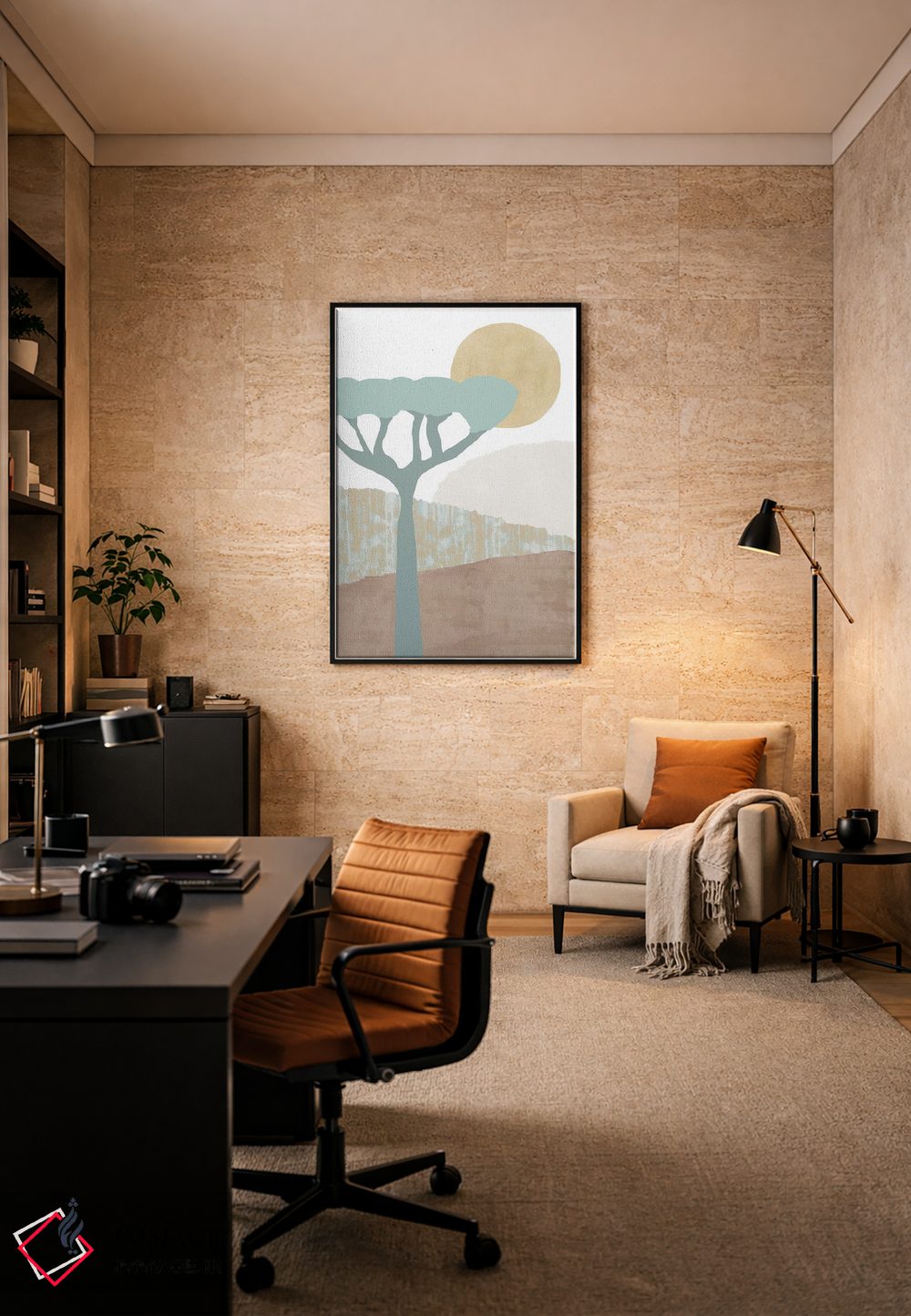 براساس پالت خنثی اثر، قاب بلوط روشن (چوبی) پیشنهاد اول است و استخوانی ملایم مکمل. برای سفارشهای پروژهای با ابعاد و قابهای اختصاصی با ایماژ در تماس باشید.