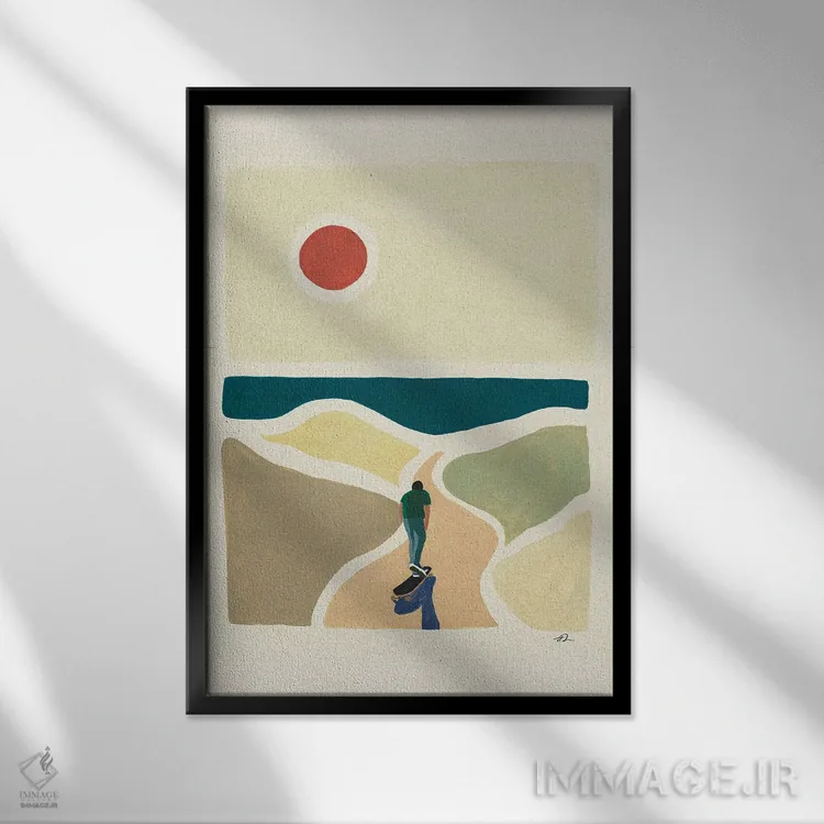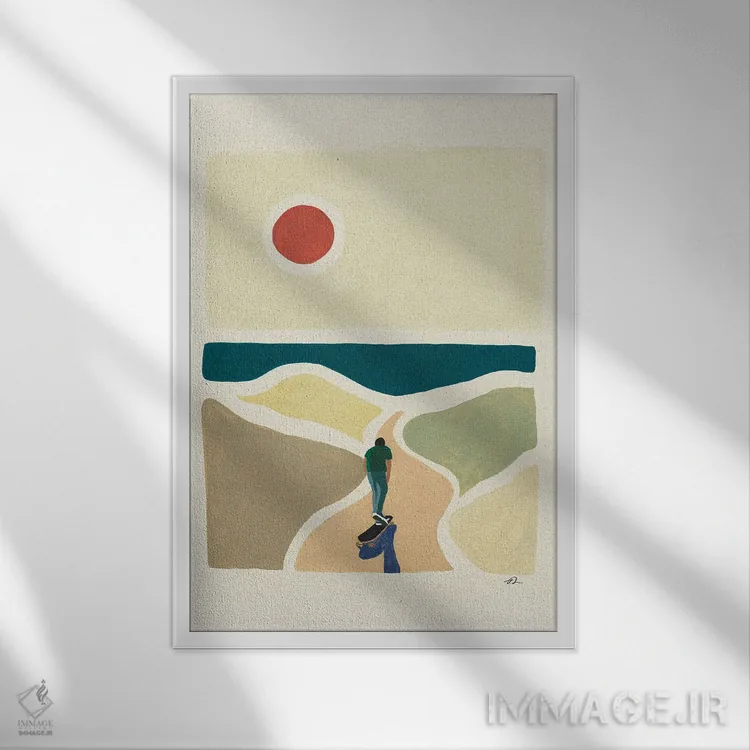 براساس پالت ترکیبی اثر، قاب بلوط روشن (چوبی) پیشنهاد اول است و استخوانی ملایم مکمل. برای سفارشهای پروژهای با ابعاد و قابهای اختصاصی با ایماژ در تماس باشید.