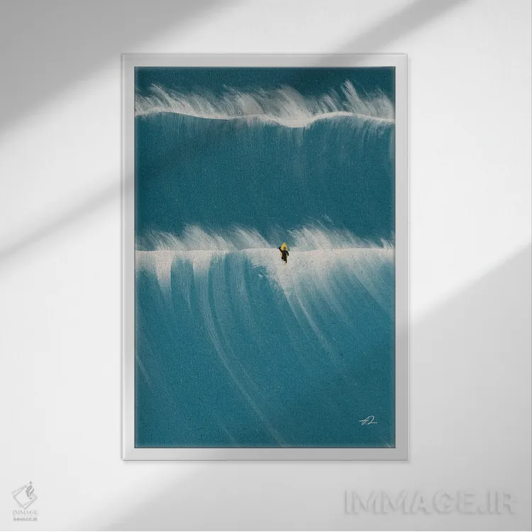 براساس پالت سرد اثر، قاب سفید مات (فریم باریک) پیشنهاد اول است و نقرهای برسخورده (متالیک) مکمل. برای سفارشهای پروژهای با ابعاد و قابهای اختصاصی با ایماژ در تماس باشید.