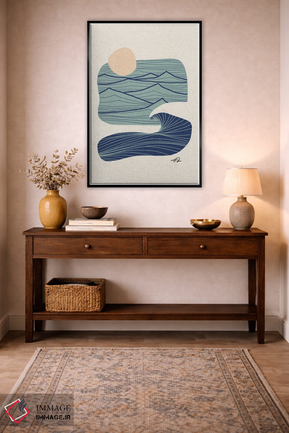 اگر دکور شما آرام و روشن است، «خطوط اقیانوس و کوهستان» اثرِ «فابیان لاواتر» با تمِ این اثر و حس ساحلی، دیوار را دلنشینتر میکند.